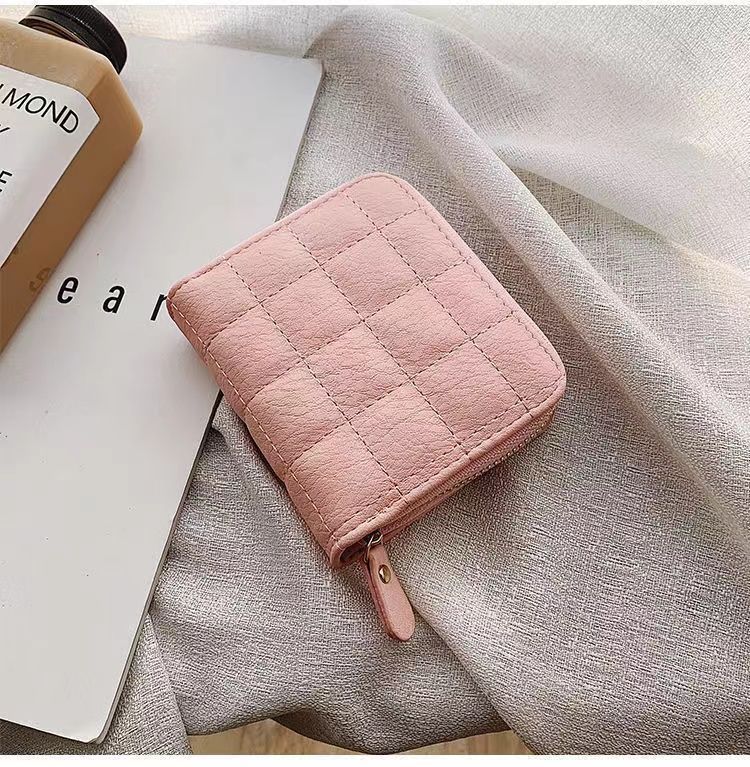 새로운 지갑 여자의 한국 스타일 간단한 미니 격자 무늬 지갑 고등학생 복고풍 짧은 동전 지갑 카드 가방 멀티 카드 슬롯