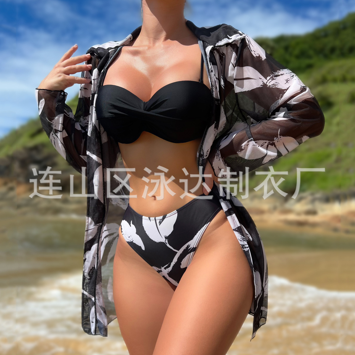 섹시 프린트 쓰리피스 비키니 수영복 여성용 비키니 스플릿 슬림 크로스 보더 수출 유럽과 미국 도매 수영복