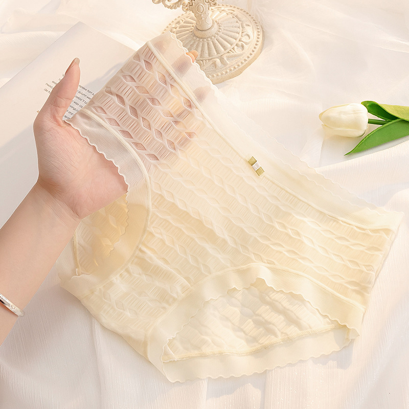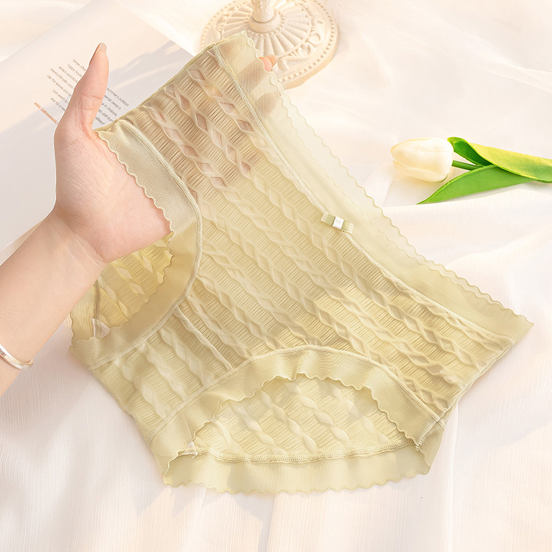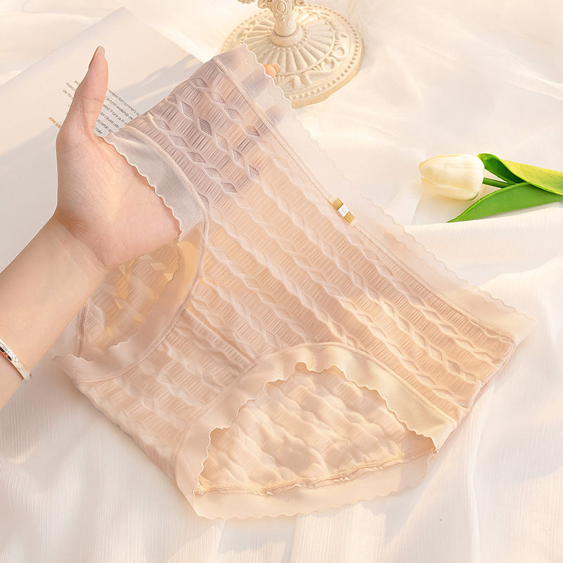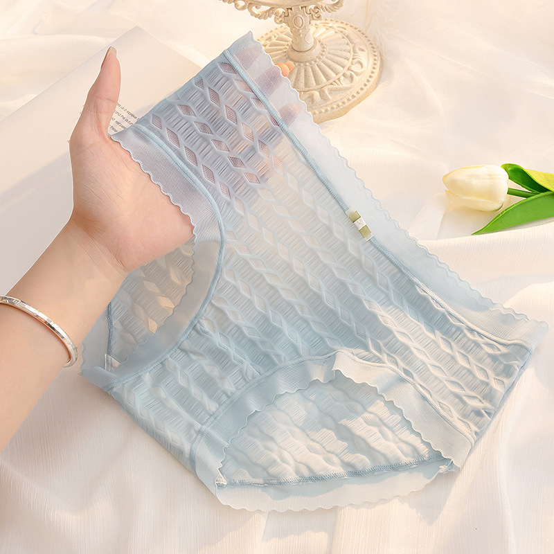 여름 아이스 실크 스크린 레드 여성 속옷 초박형 미드 웨이스트 여성용 팬티 순면 가랑이 항균 땀 흡수 통기성 바지스토어 가기