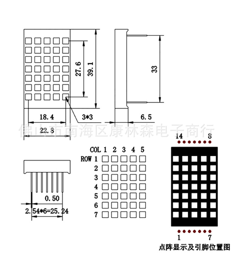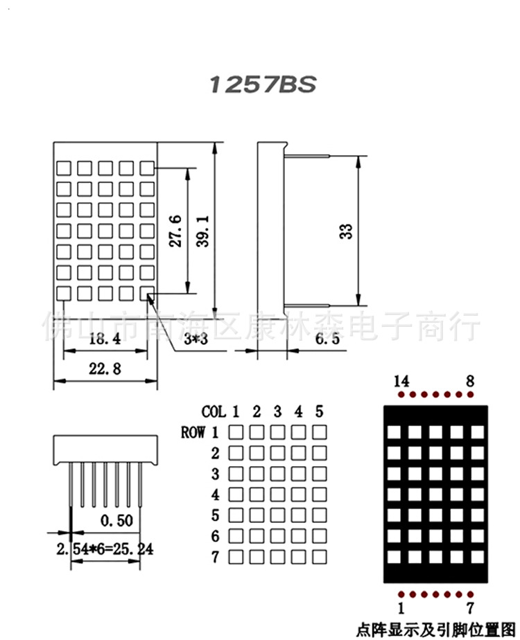 1257 도트 매트릭스 3MM5*7 도트 매트릭스 모듈 1257AS 그리드 5*7 도트 매트릭스 모듈 1257BS스토어 가기