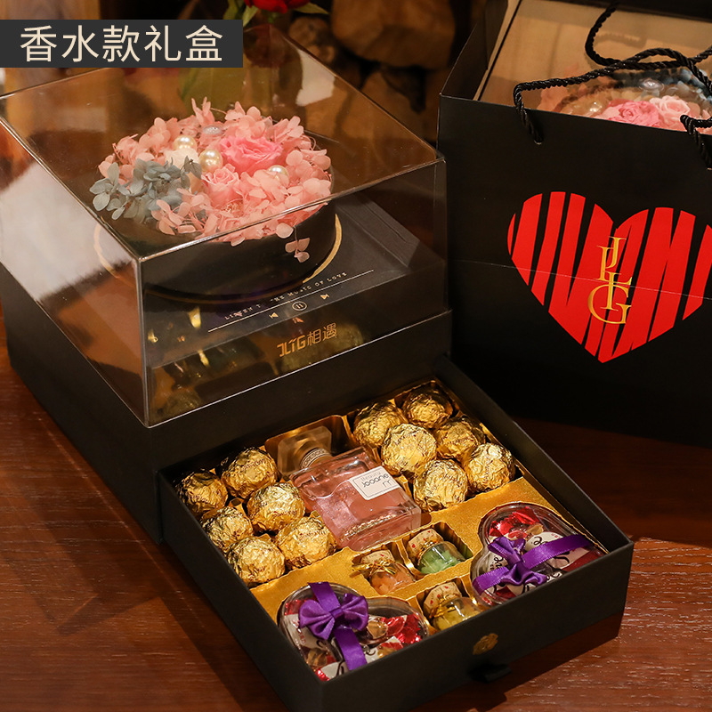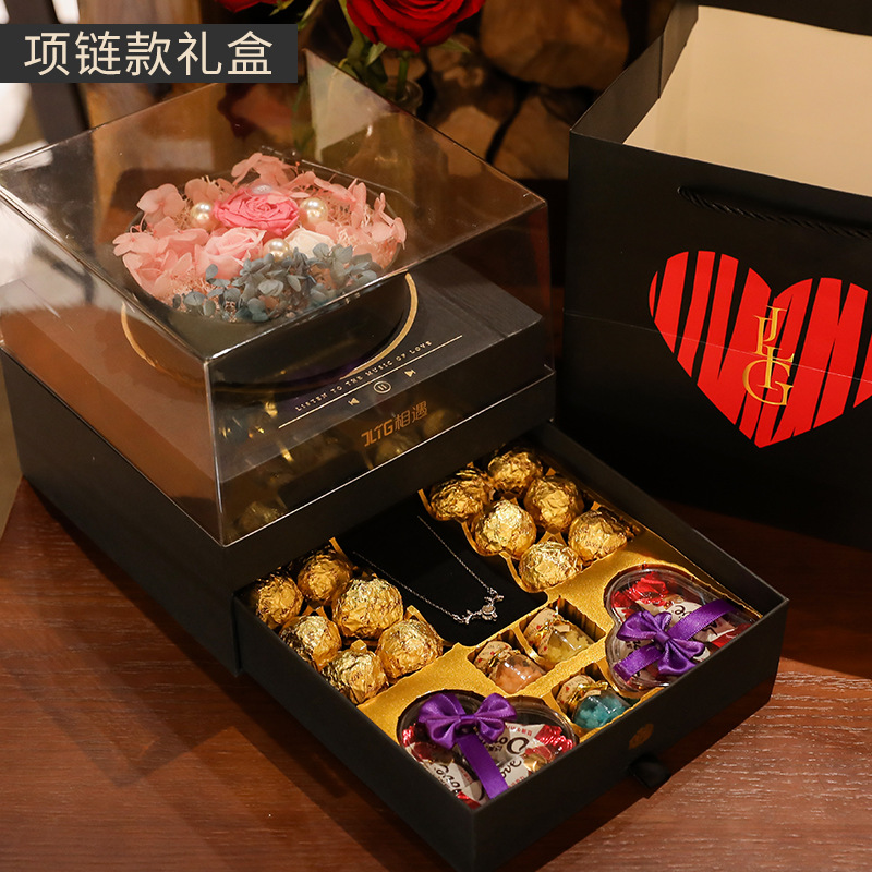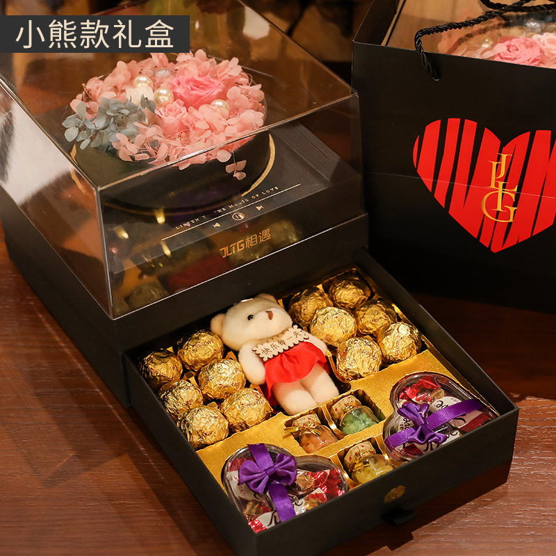크리스마스 발렌타인 데이 음악 회전 영원한 꽃 축음기 초콜릿 세트 아내 여성 창조적 인 낭만적 인 선물 상자스토어 가기