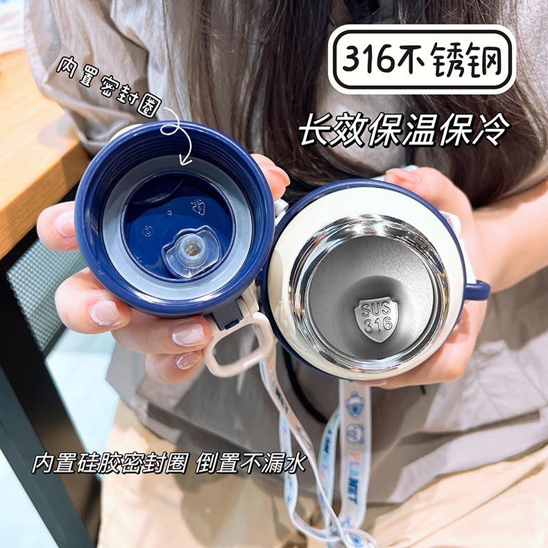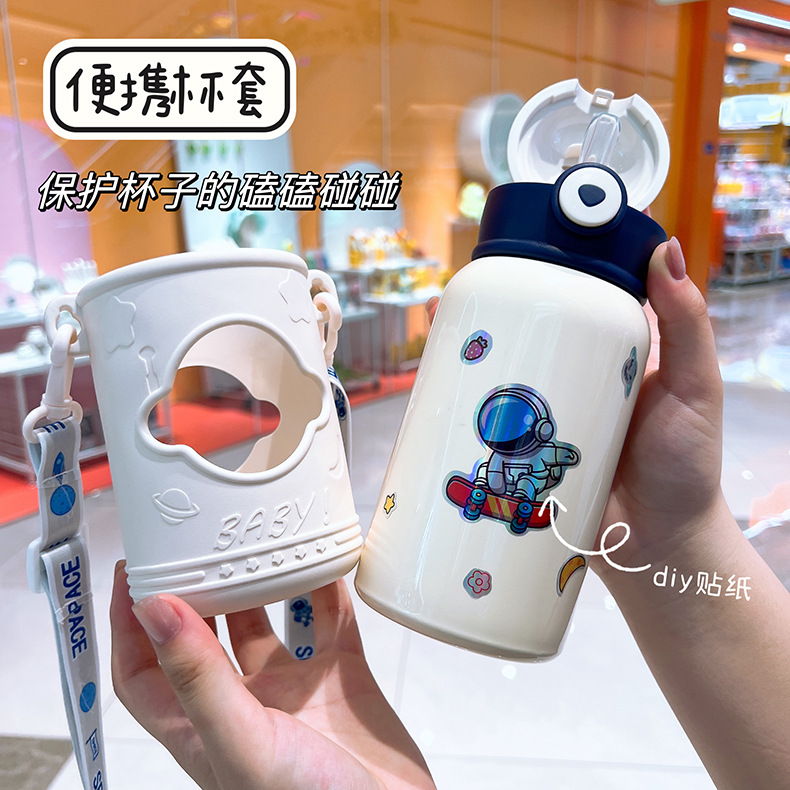 새로운 어린이 보온병 컵 316 스테인레스 스틸 컵 빨대 컵 만화 단열 차가운 휴대용 실리콘 슬리브