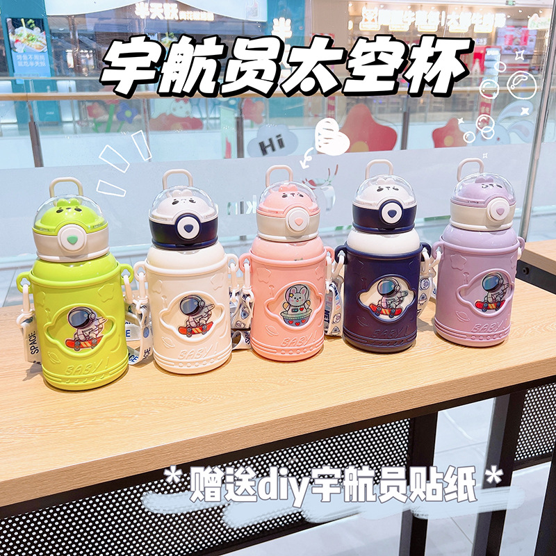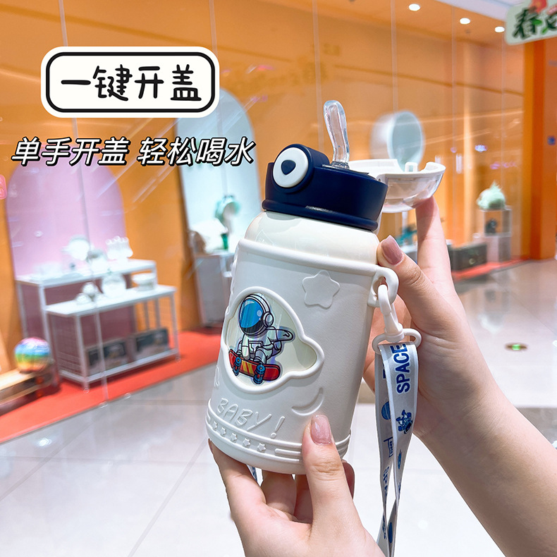 새로운 어린이 보온병 컵 316 스테인레스 스틸 컵 빨대 컵 만화 단열 차가운 휴대용 실리콘 슬리브스토어 가기