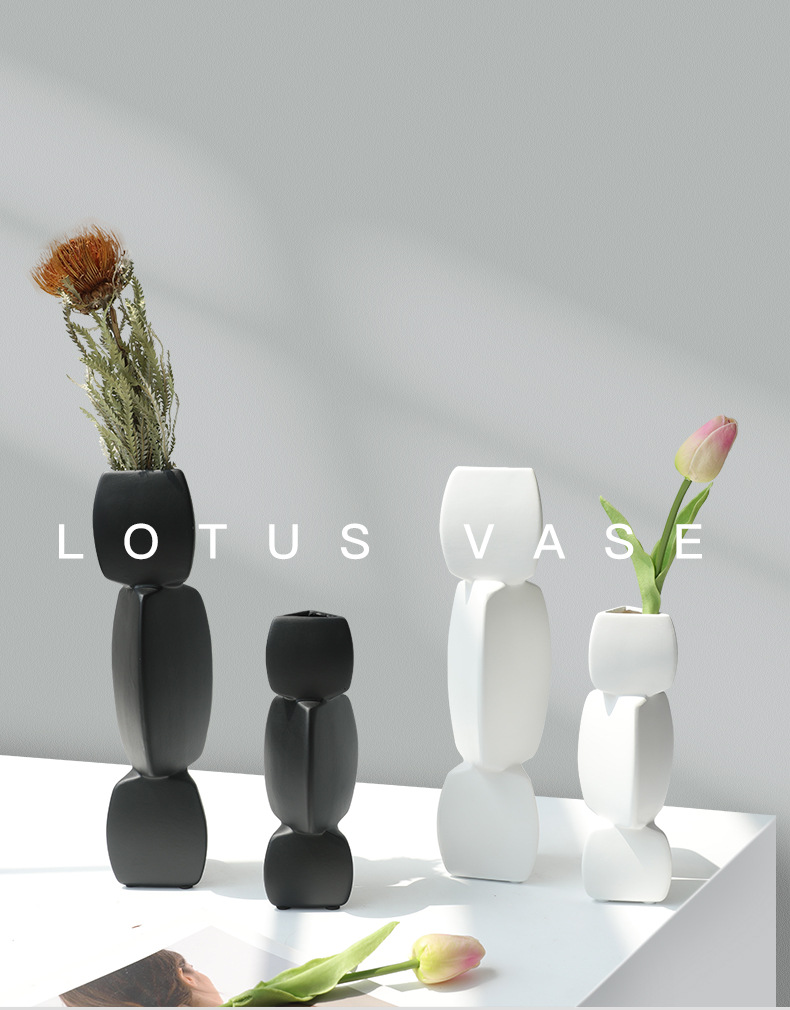 북유럽 스타일 홈 간단한 크리에이 티브 세라믹 연꽃 뿌리 꽃병 장식 거실 데스크탑 서양 레스토랑 장식 꽃병 말린 꽃 삽입스토어 가기