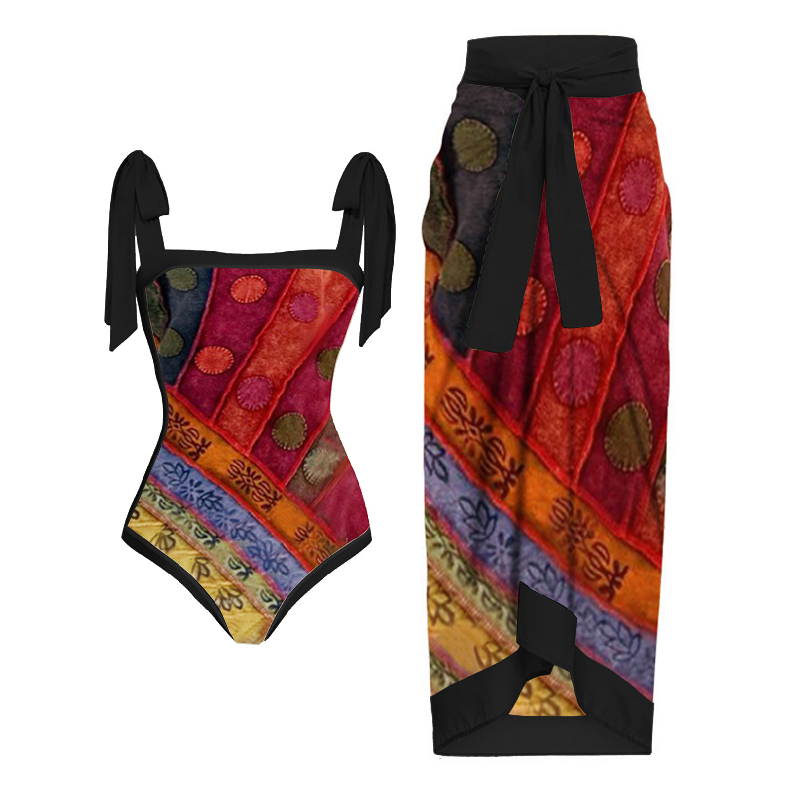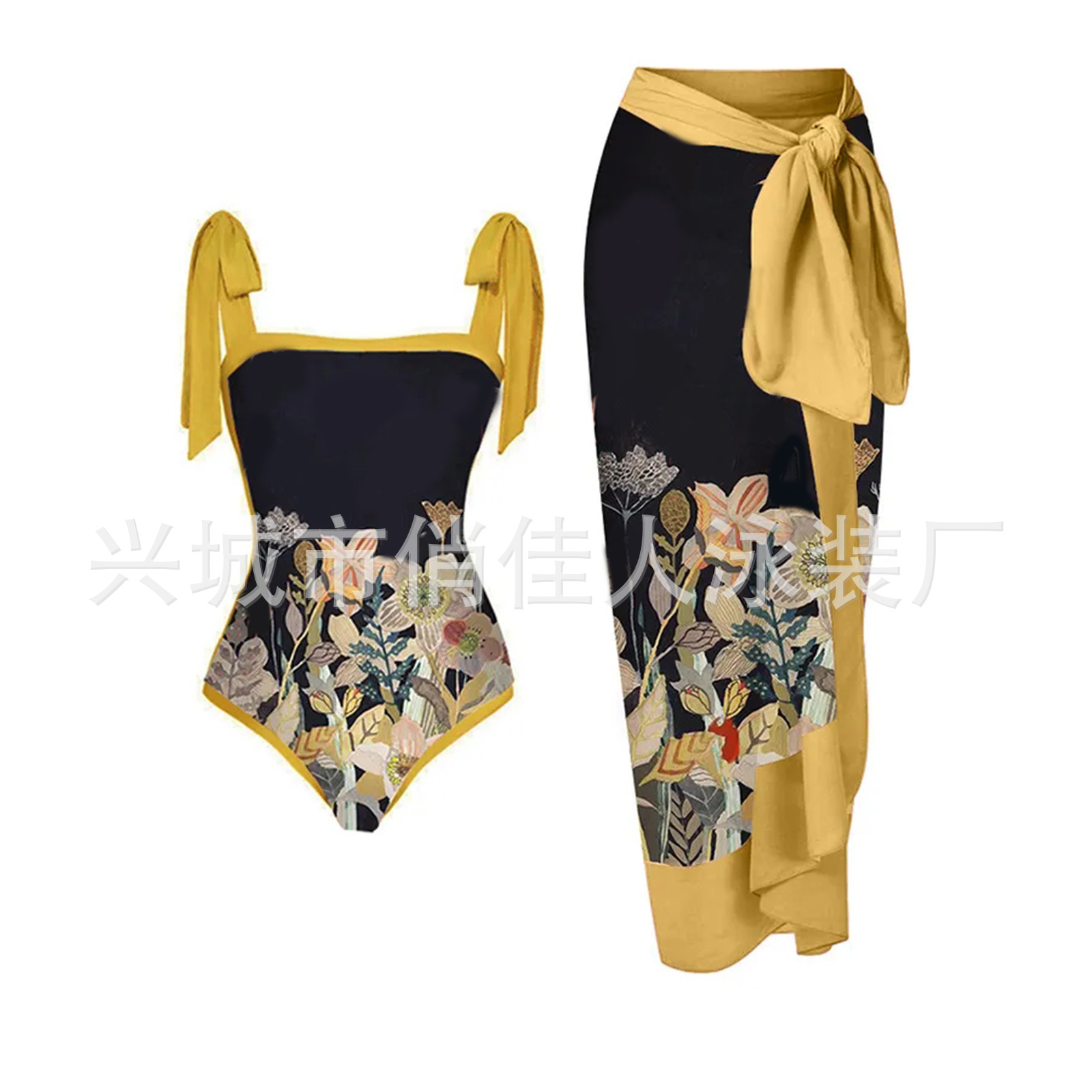 2023 새로운 섹시한 원피스 수영복 여자의 유럽과 미국 비키니 레이스 업 수영복 세트 원피스 쉬폰 비키니