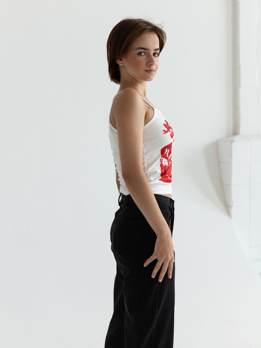 섹시한 유럽과 미국 스타일 순수한 욕망 작은 슬링 향신료 소녀 편지 인쇄 대비 색상 슬림핏 슬리밍 보우베이스 작은 조끼스토어 가기