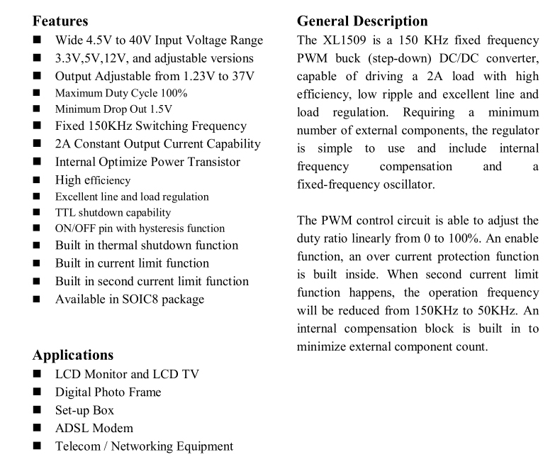 새로운 전압 안정화 및 벅 칩 XL1509-3.3/5.0/12E1/ADJ E1 패치 SOP-8 XL1509스토어 가기