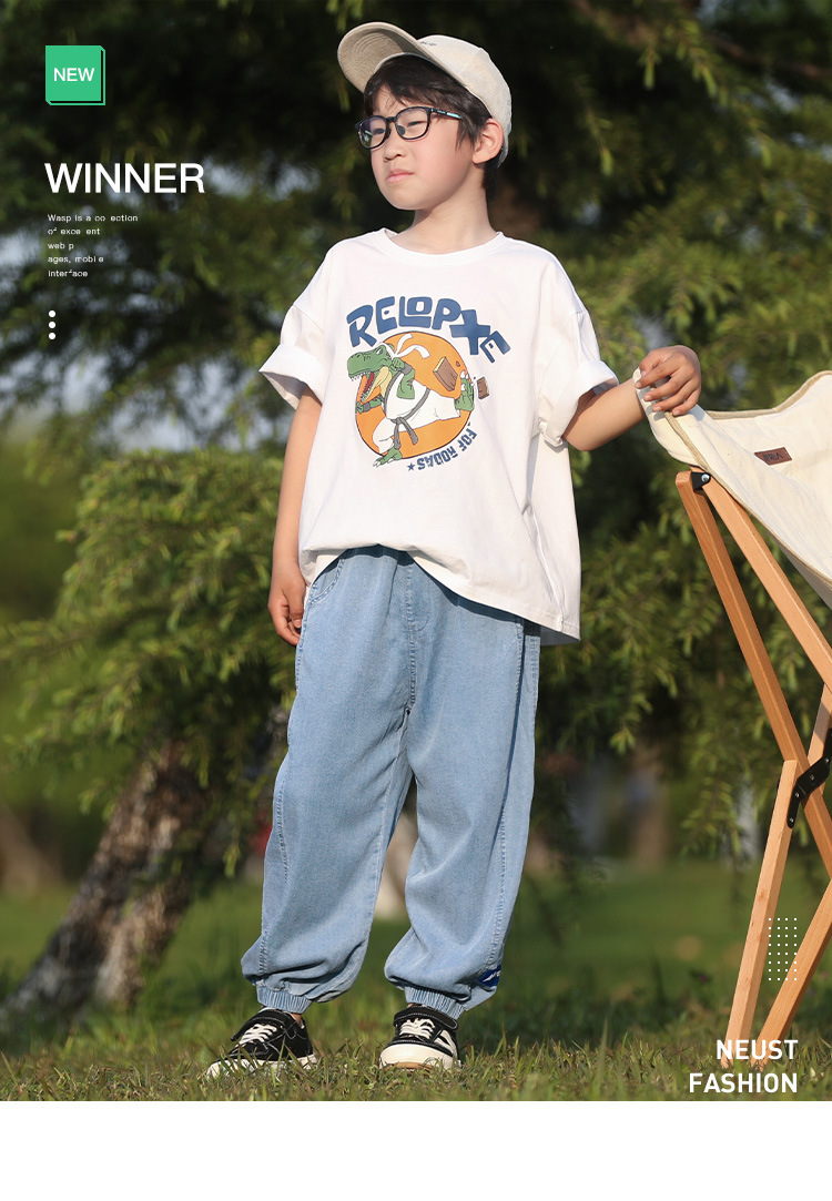 남아 청바지 여름 얇은 어린이 느슨한 Tencel 모기 방지 바지 큰 어린이 여름 서양 스타일 캐주얼 유행 바지스토어 가기