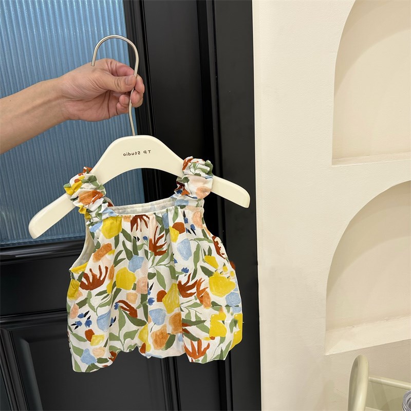 여자 정장 꽃 서스펜더 버드 탑 플러스 스트레치 벨 바지 25 여름 의류 새로운 대외 무역 아동 의류 세대스토어 가기
