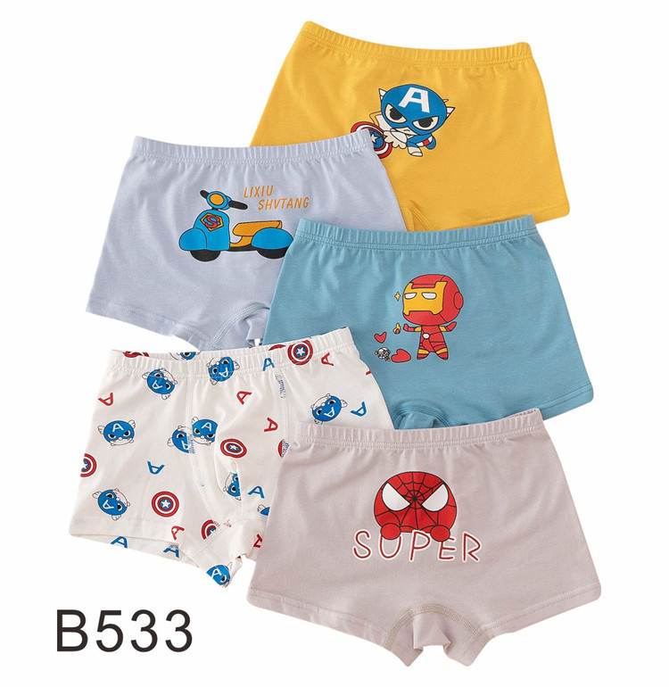 어린이 속옷 코튼 히어로 만화 복서 반바지 뼈없는 아기 소년 학생 얇은 여름 바지 도매