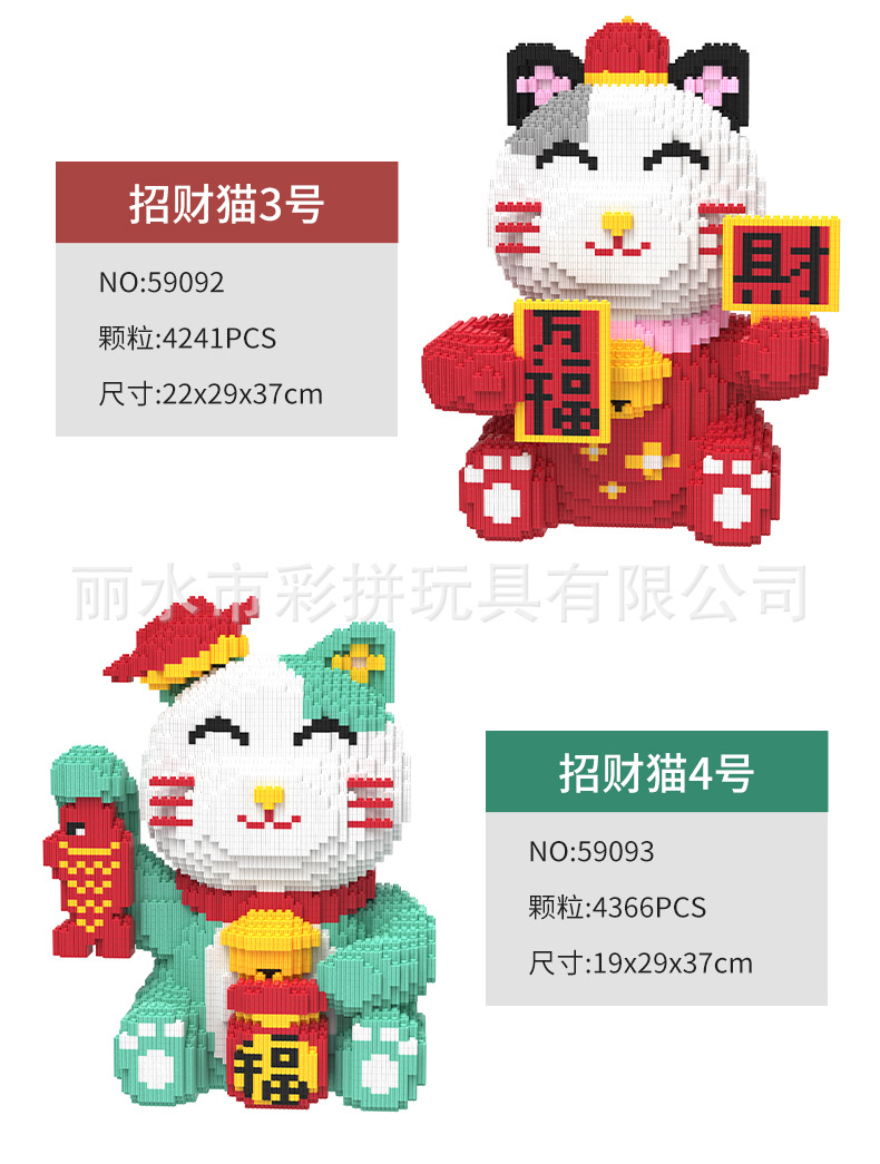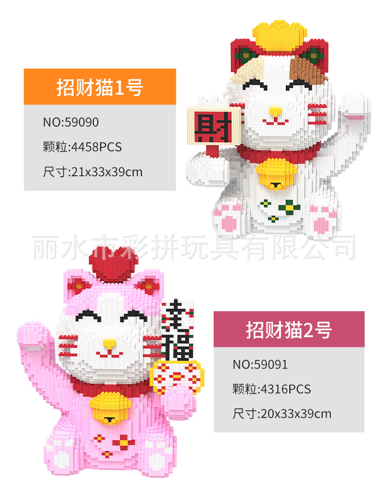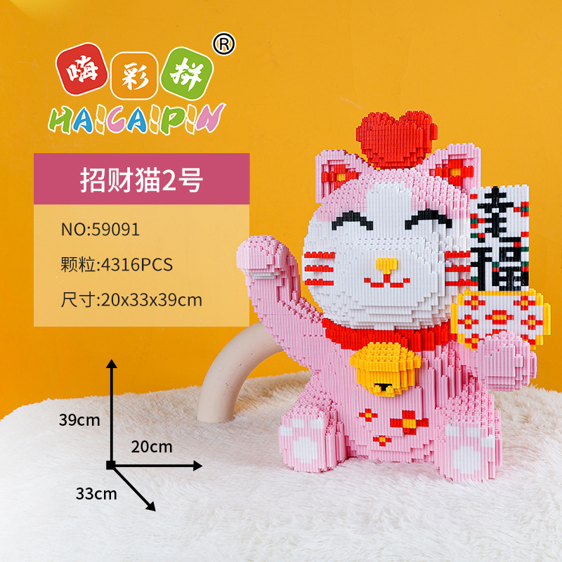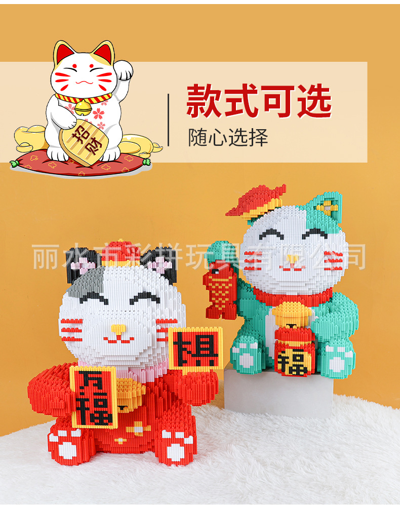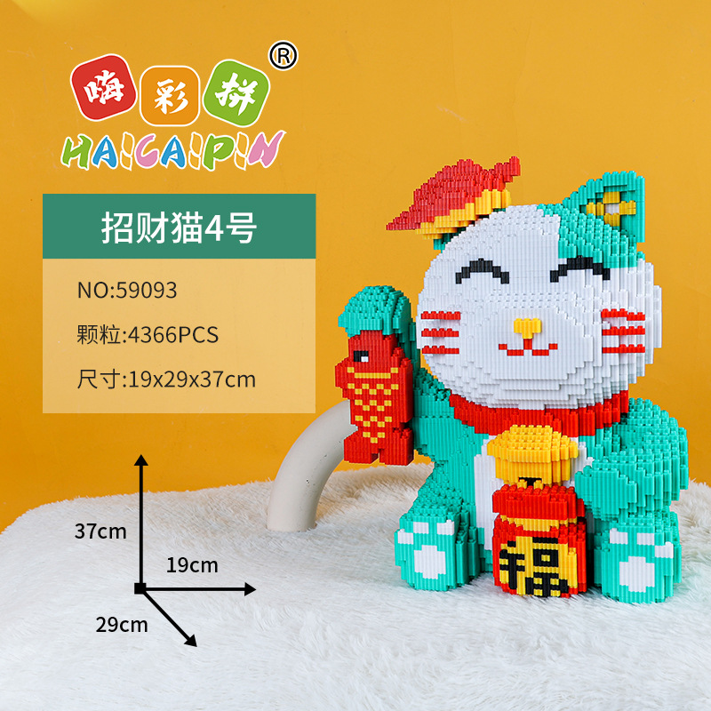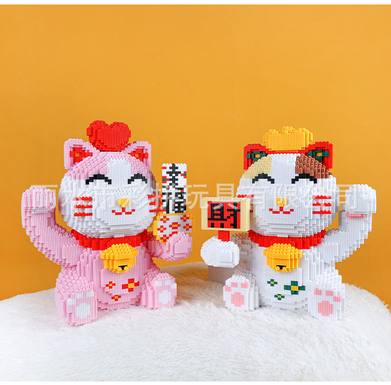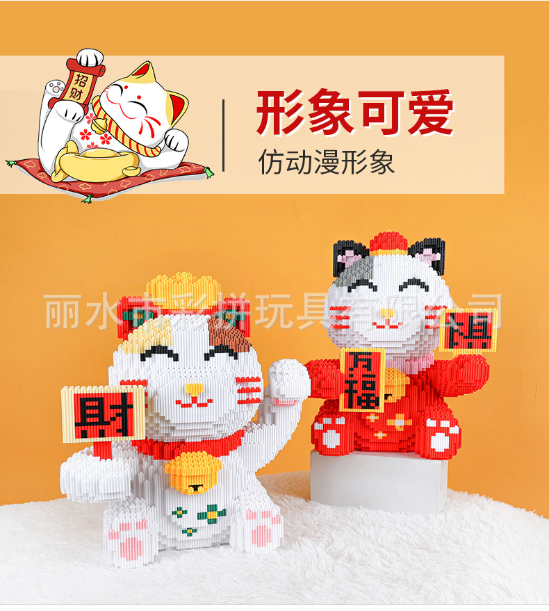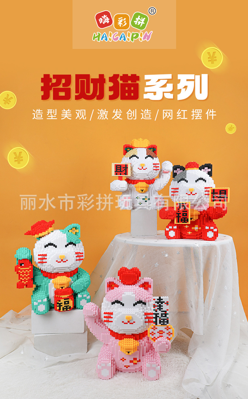 하이카이핀 행운의 고양이 중국풍 조립식 교육용 블록 장식품 수제 창의적 장난감스토어 가기
