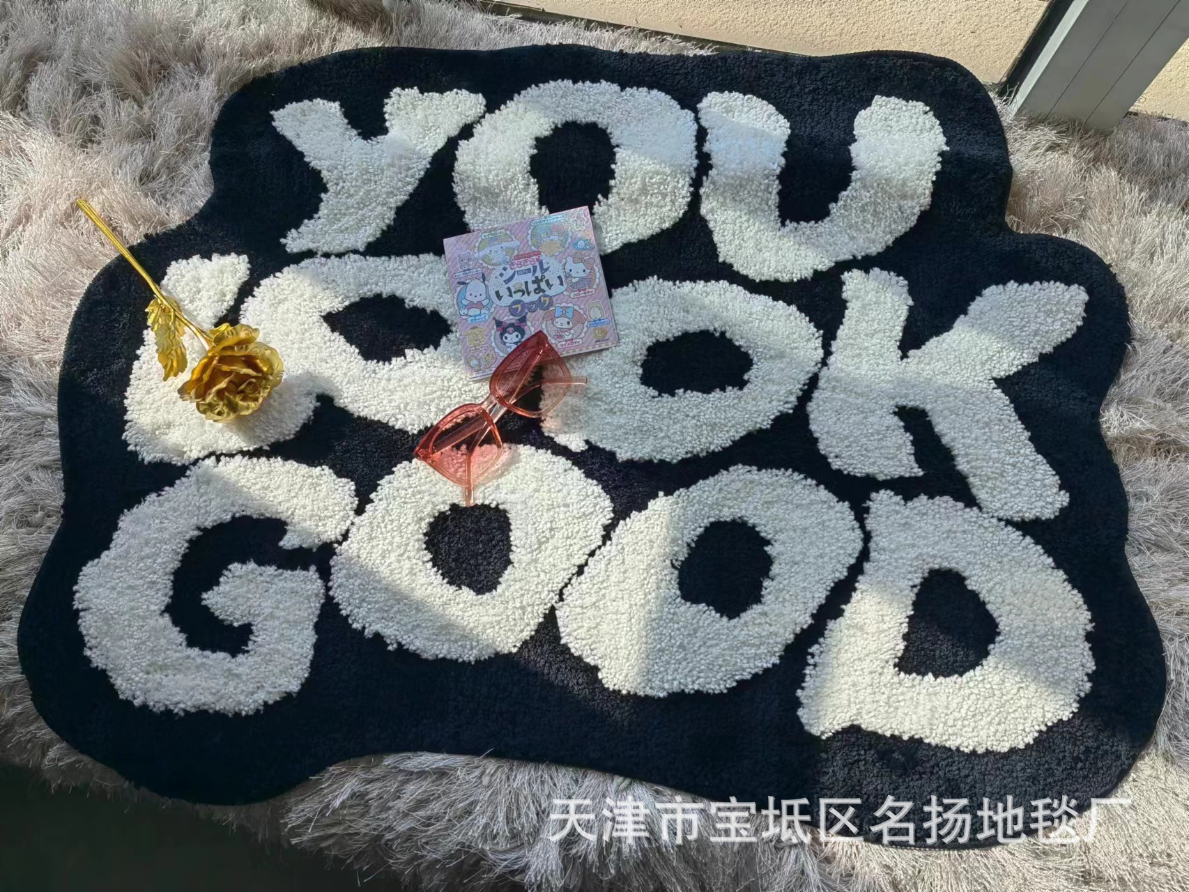 새로운 크로스 보더 흡수성 미끄럼 방지 편지 무리 간단한 홈 카펫 바닥 매트 침대 옆 담요 침실 녹색 발 매트스토어 가기