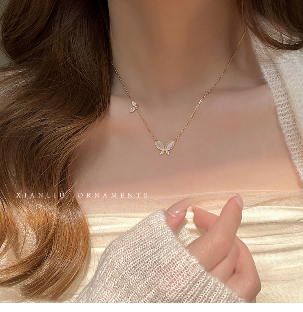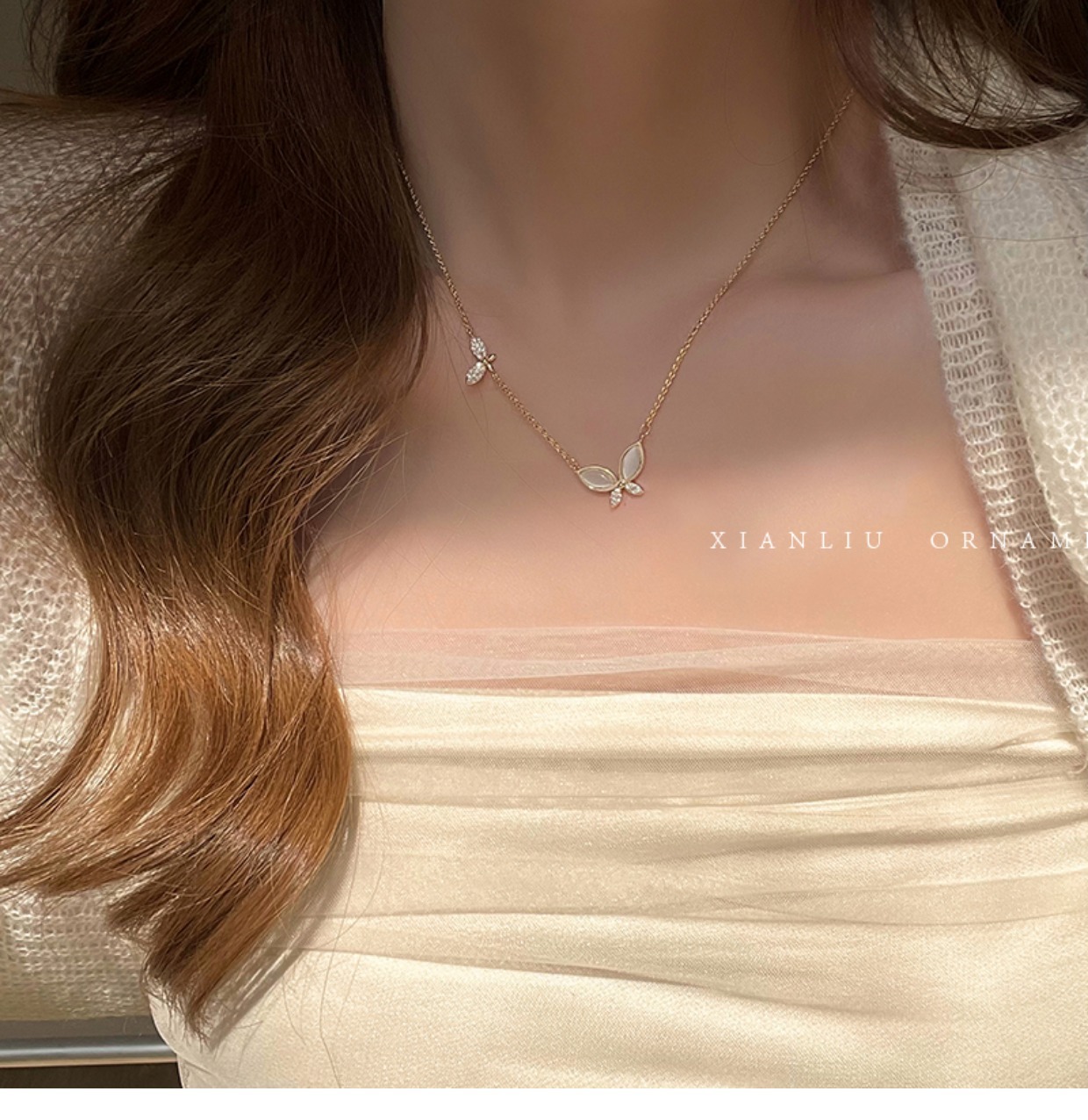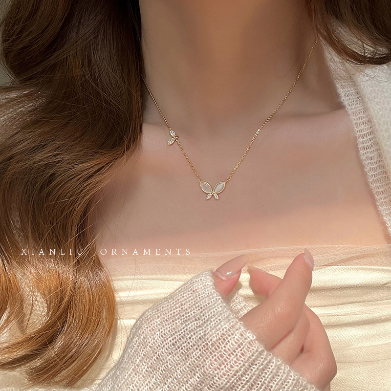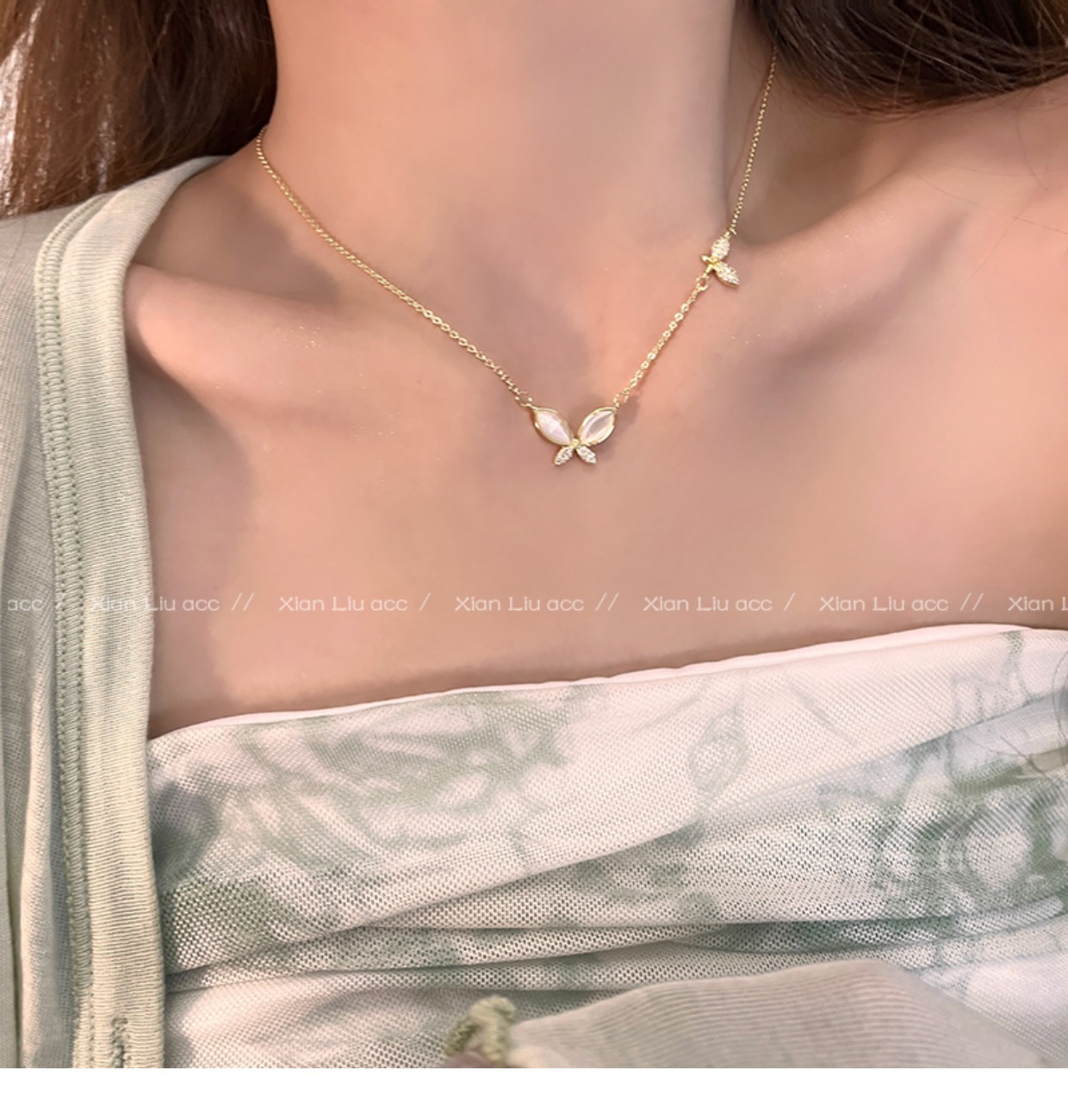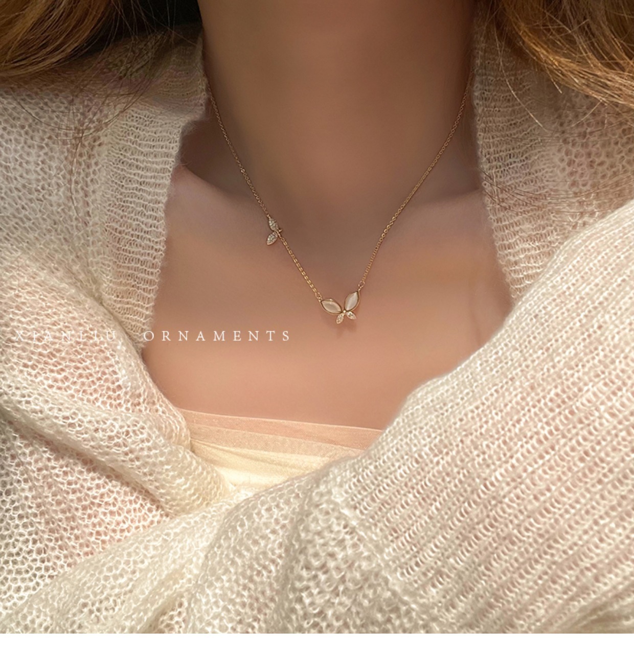 다이아몬드 박힌 고양이 눈 나비 목걸이 여성용 2022 새로운 패션 라이트 럭셔리 틈새 쇄골 체인 기질 차가운 바람 액세서리스토어 가기