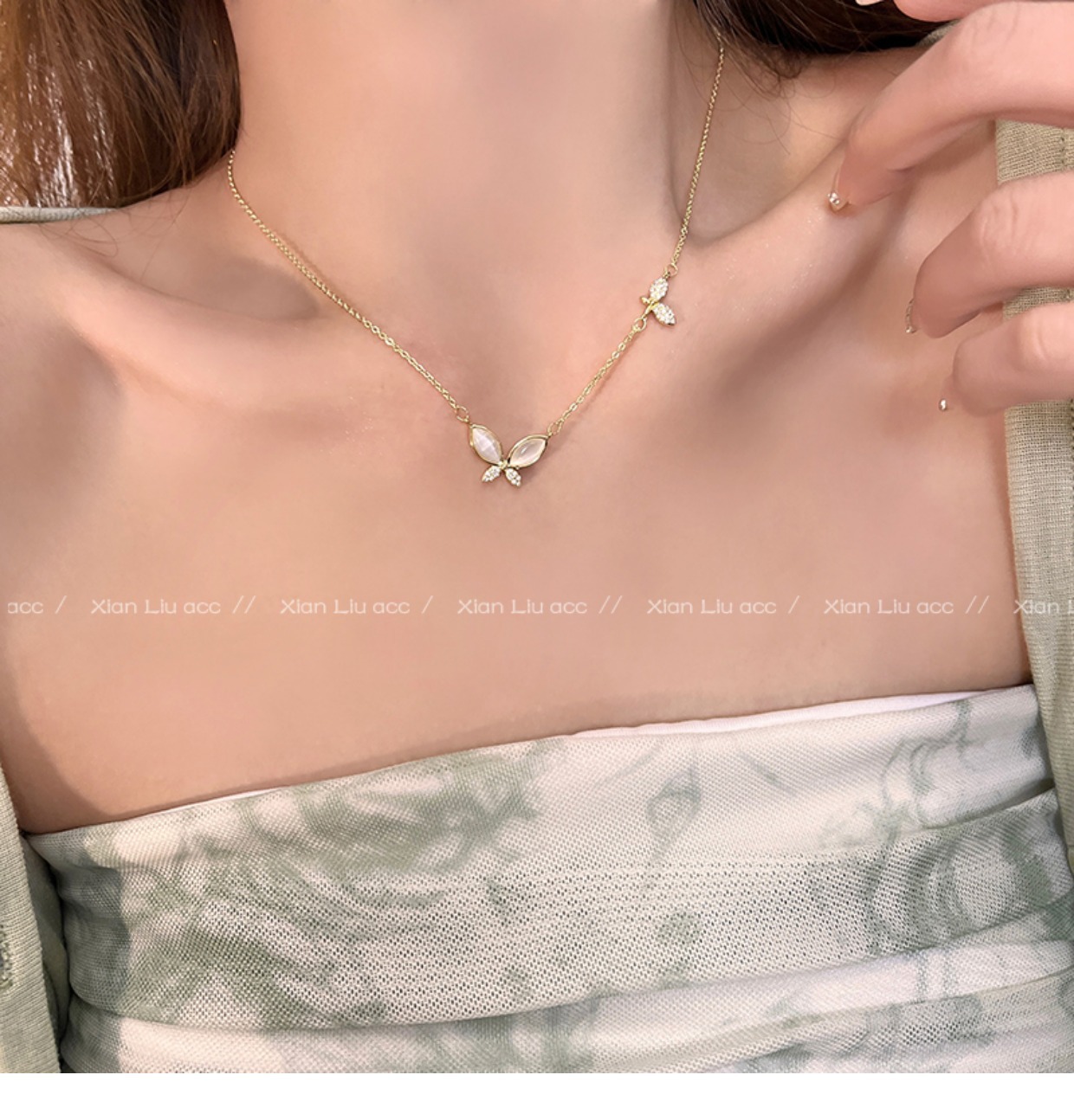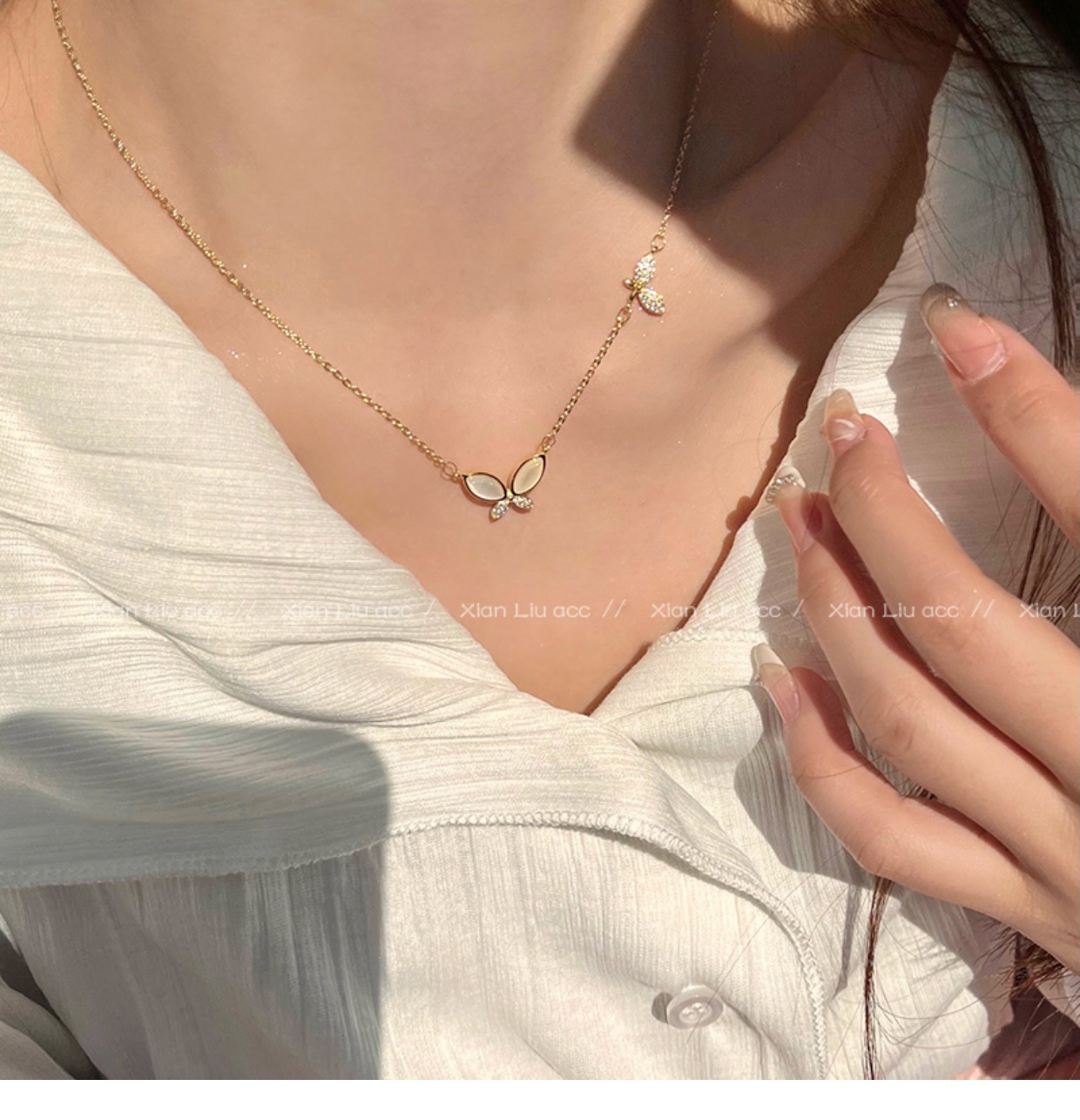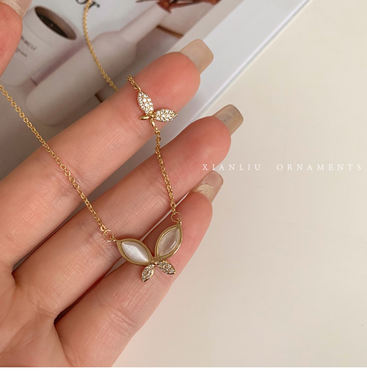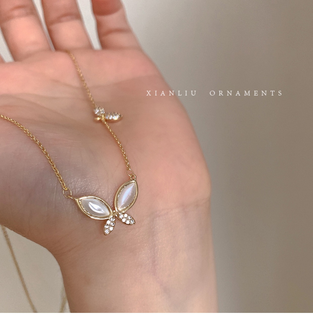 다이아몬드 박힌 고양이 눈 나비 목걸이 여성용 2022 새로운 패션 라이트 럭셔리 틈새 쇄골 체인 기질 차가운 바람 액세서리스토어 가기