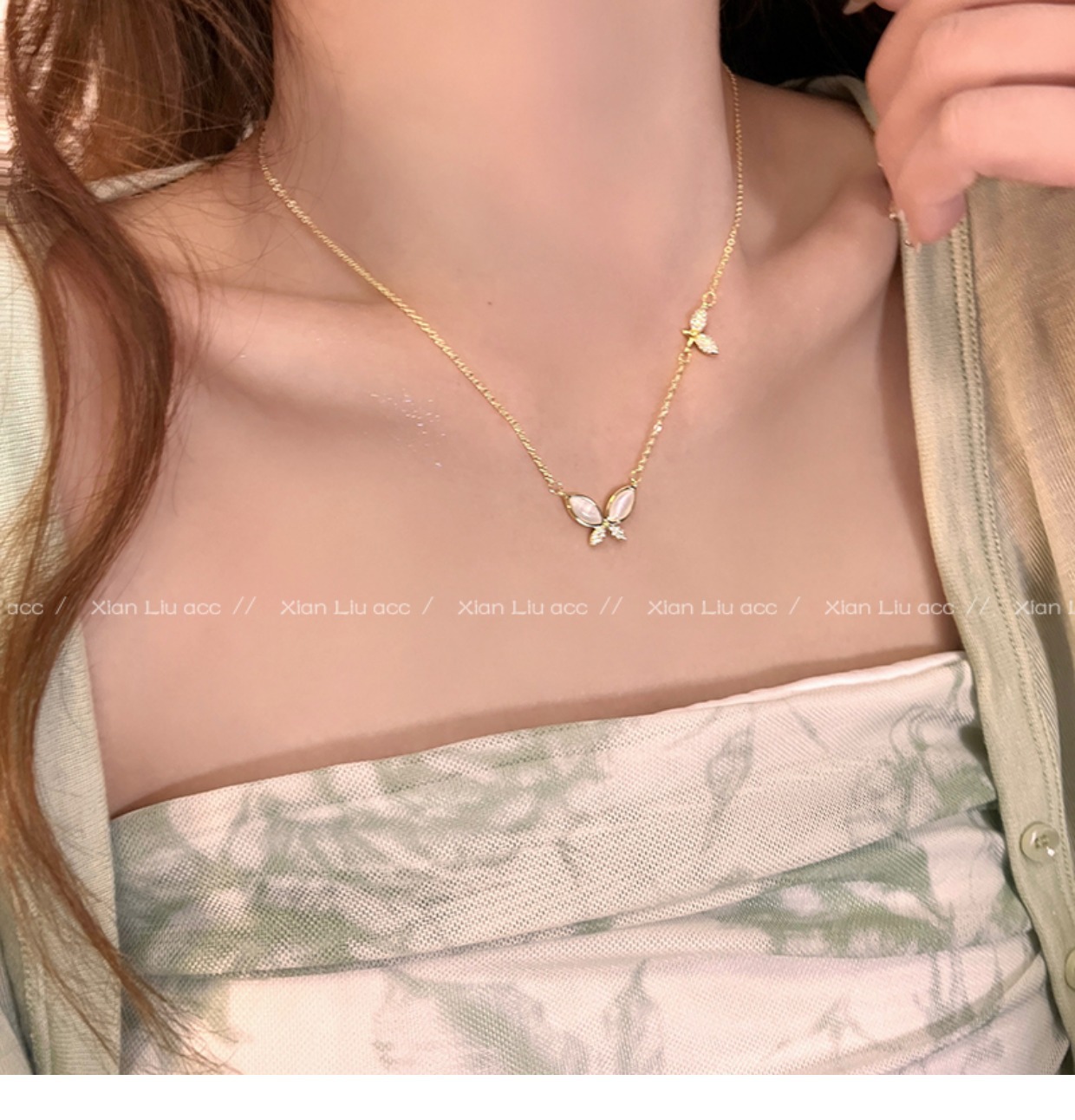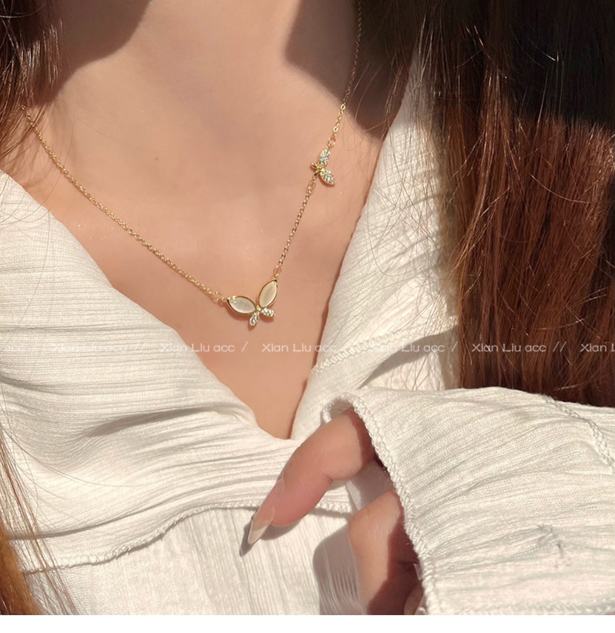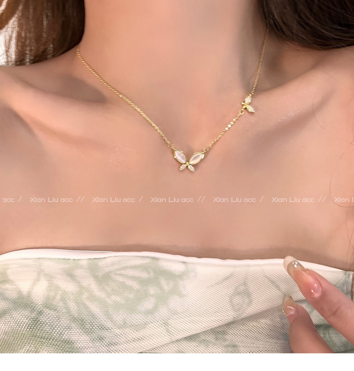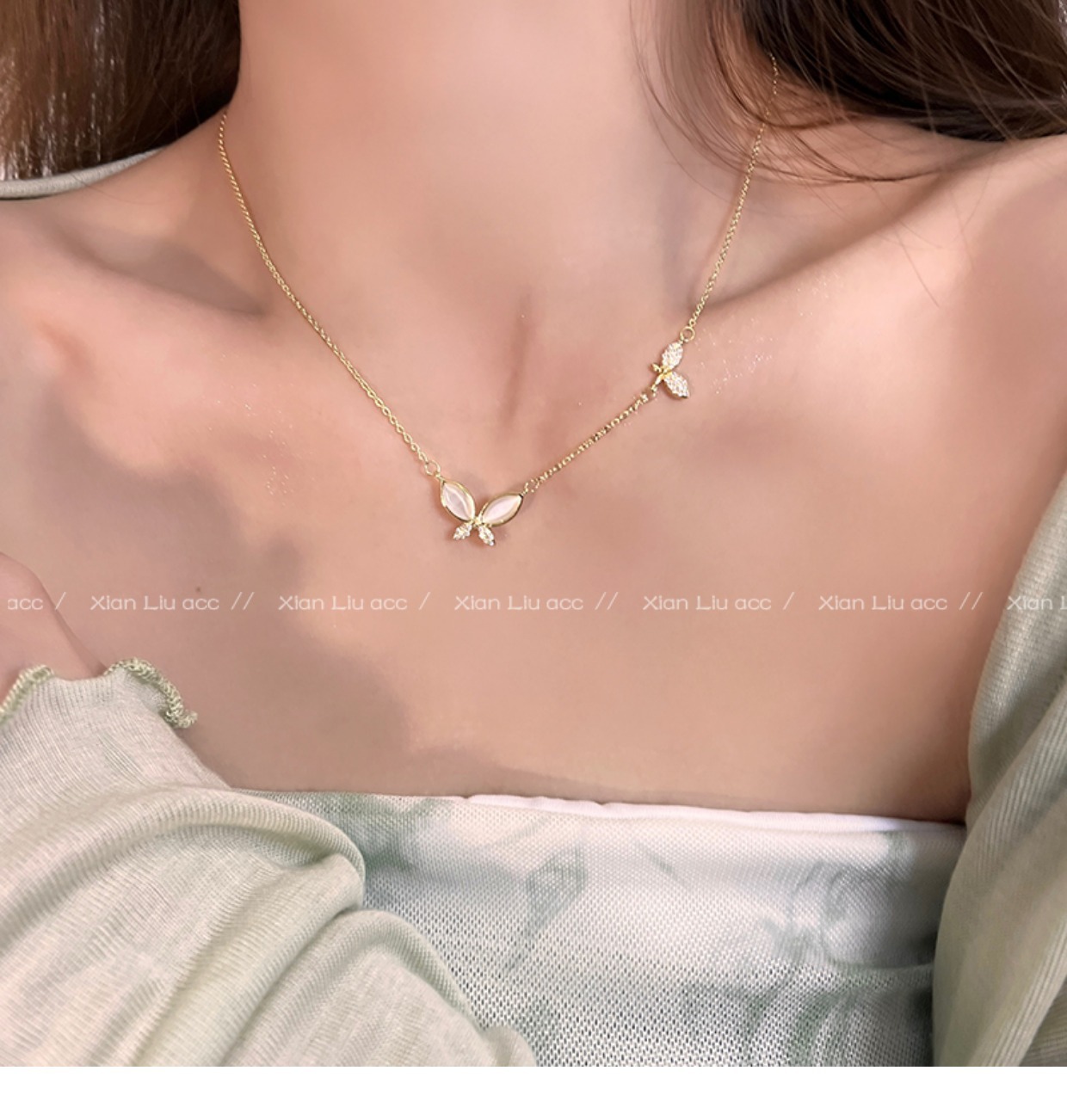 다이아몬드 박힌 고양이 눈 나비 목걸이 여성용 2022 새로운 패션 라이트 럭셔리 틈새 쇄골 체인 기질 차가운 바람 액세서리스토어 가기