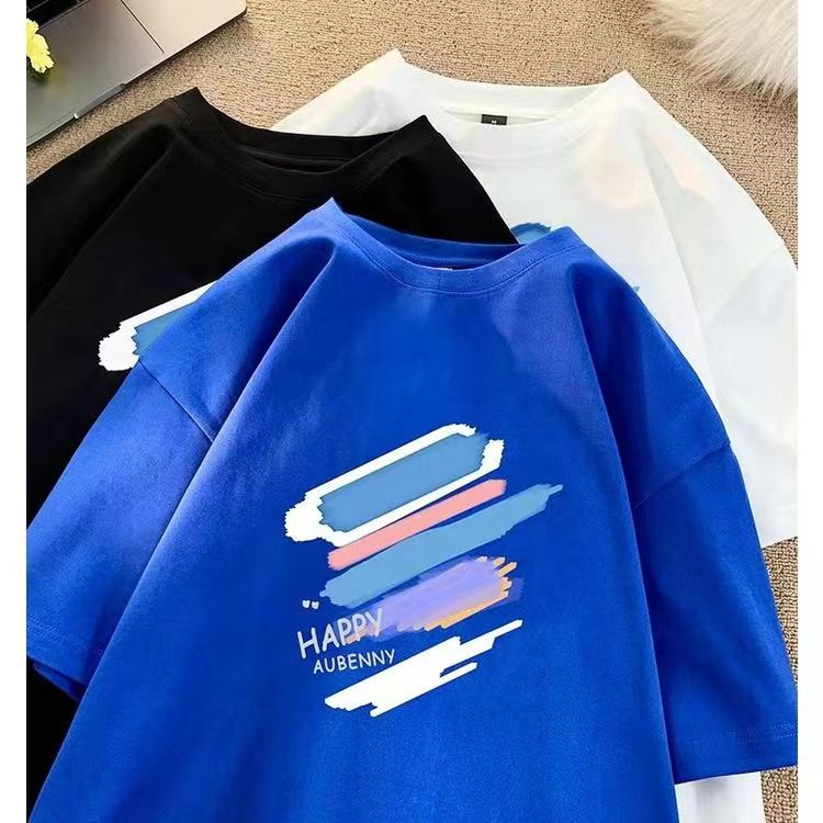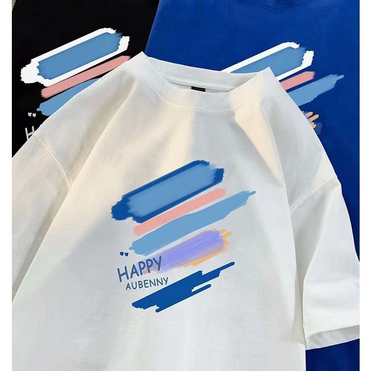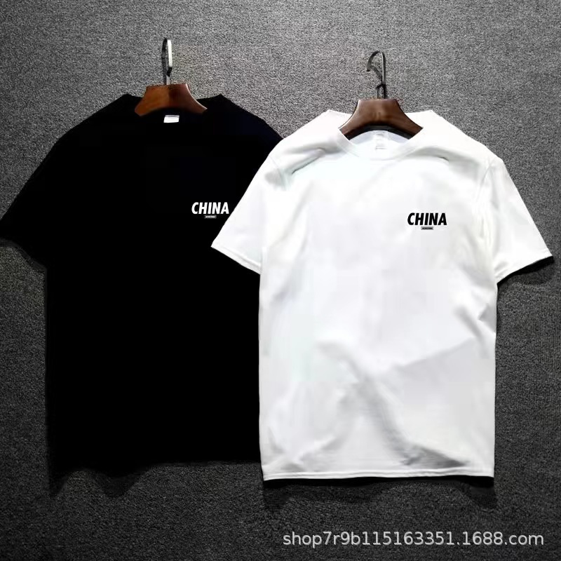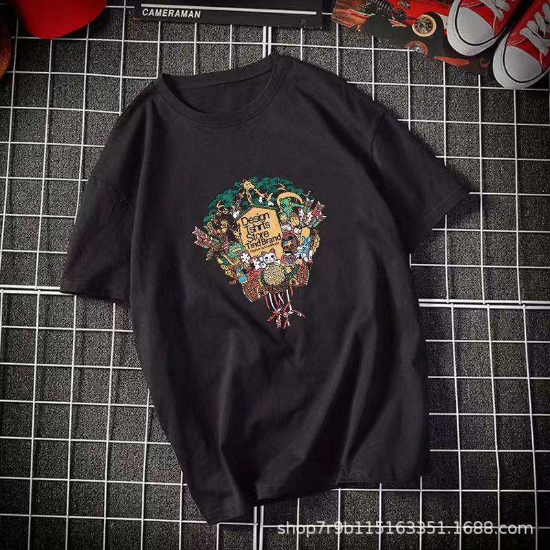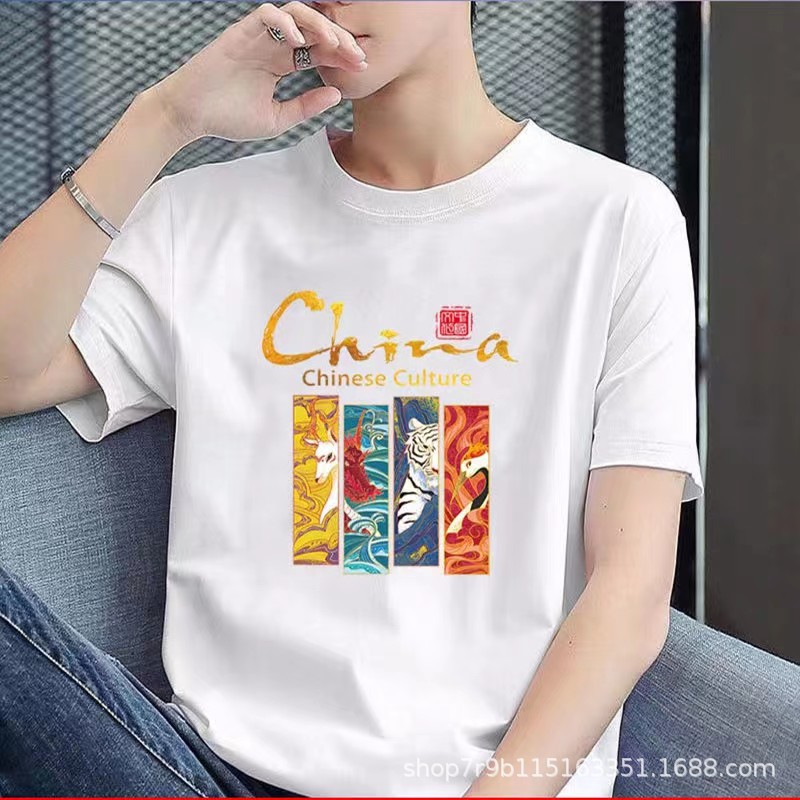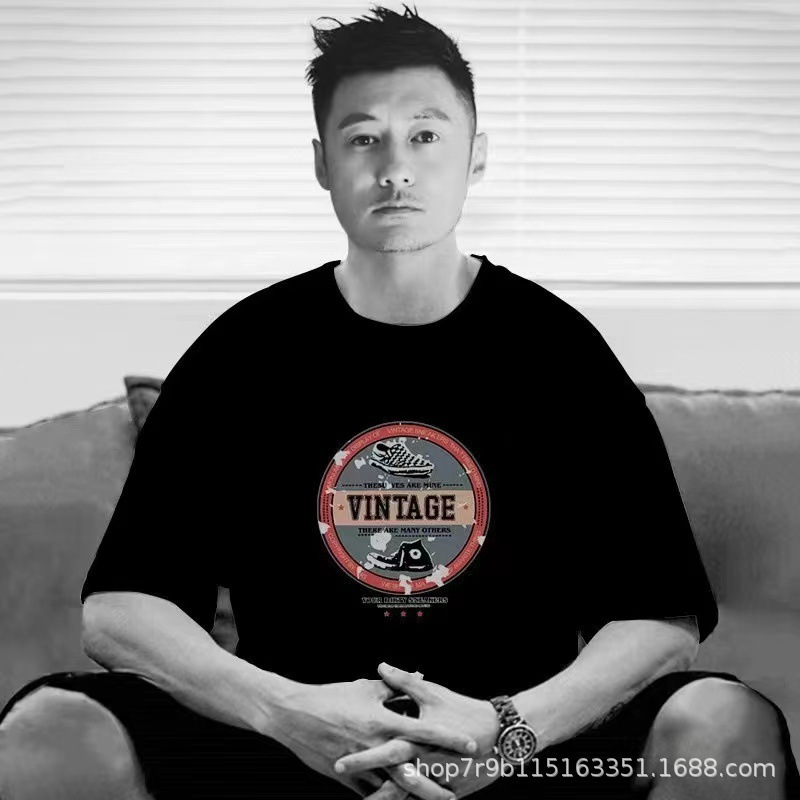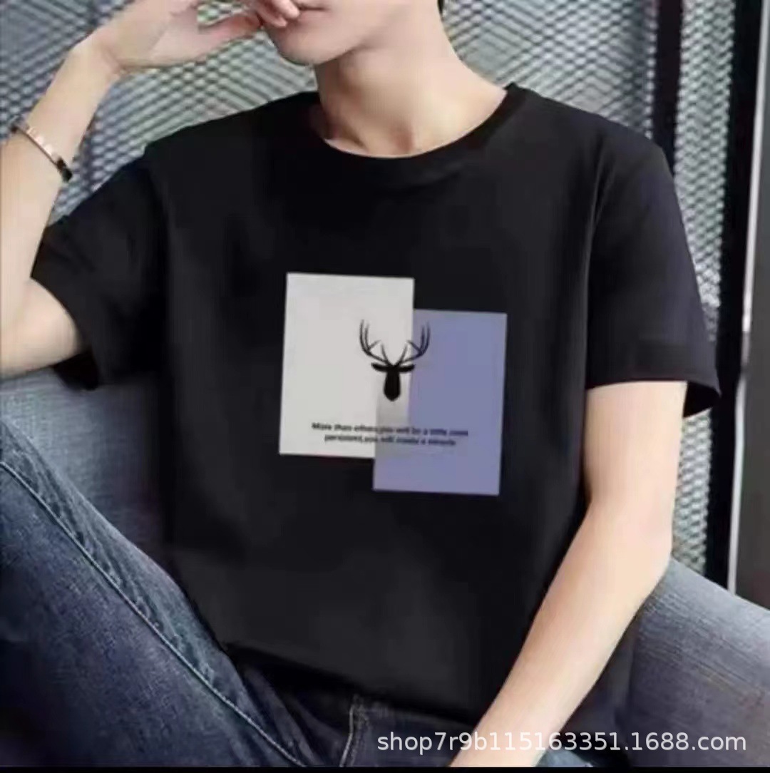 여름 빗질 코튼 반팔 티셔츠 남성용 프린트 라운드 넥 느슨한 유행 코튼 티셔츠 남성용 통기성 플러스 사이즈 청소년스토어 가기
