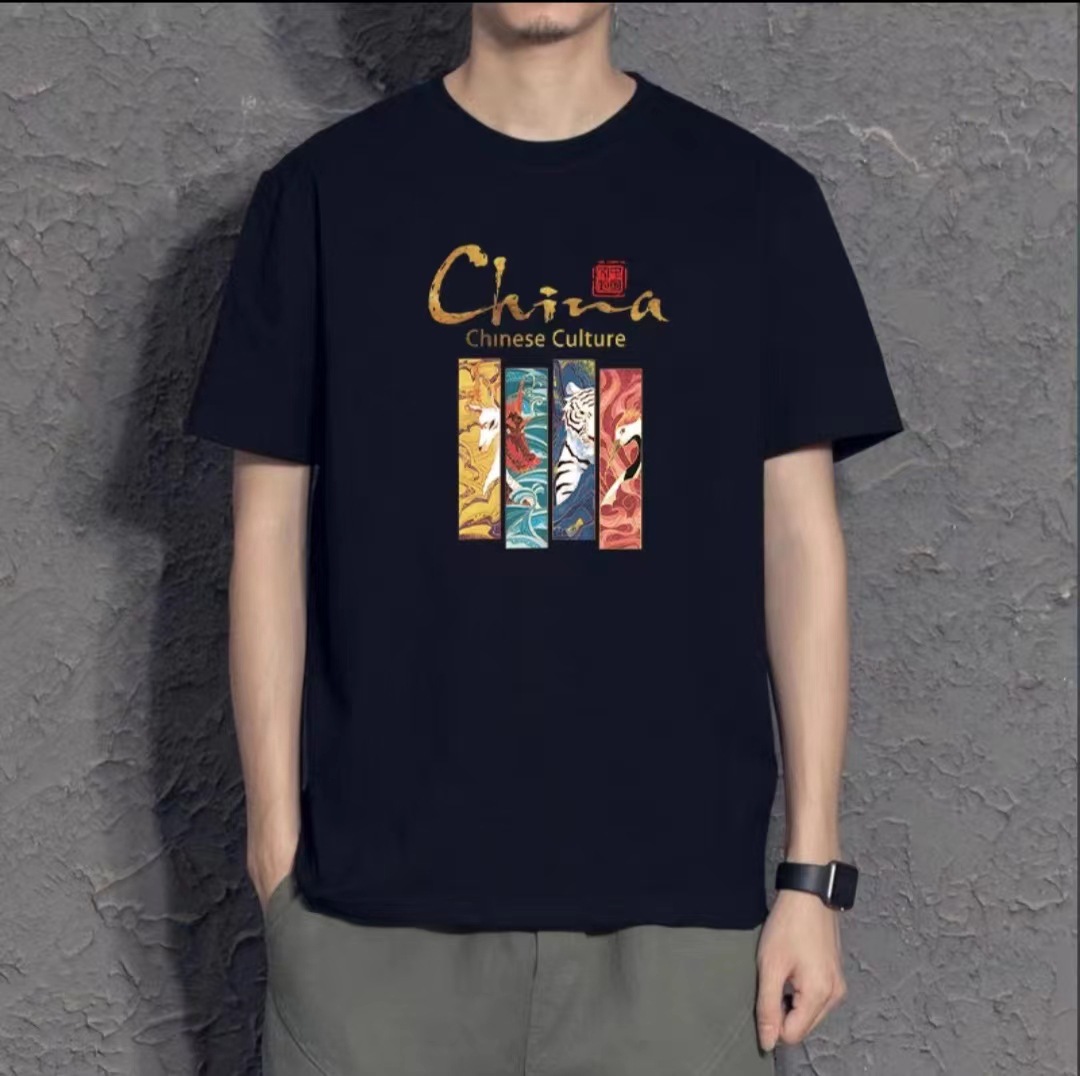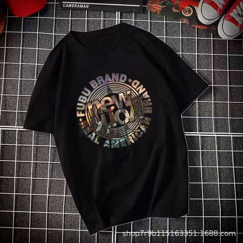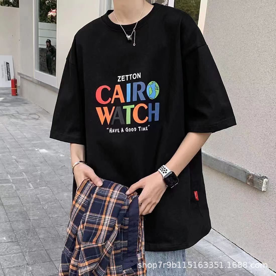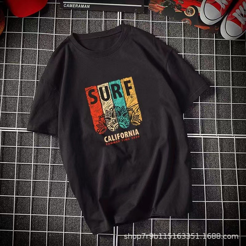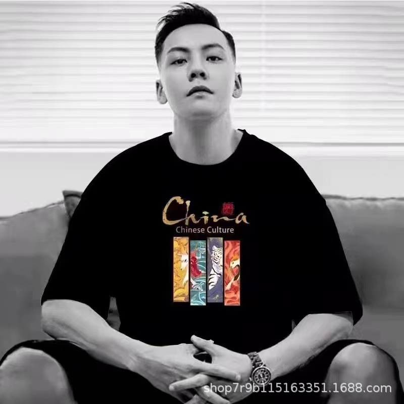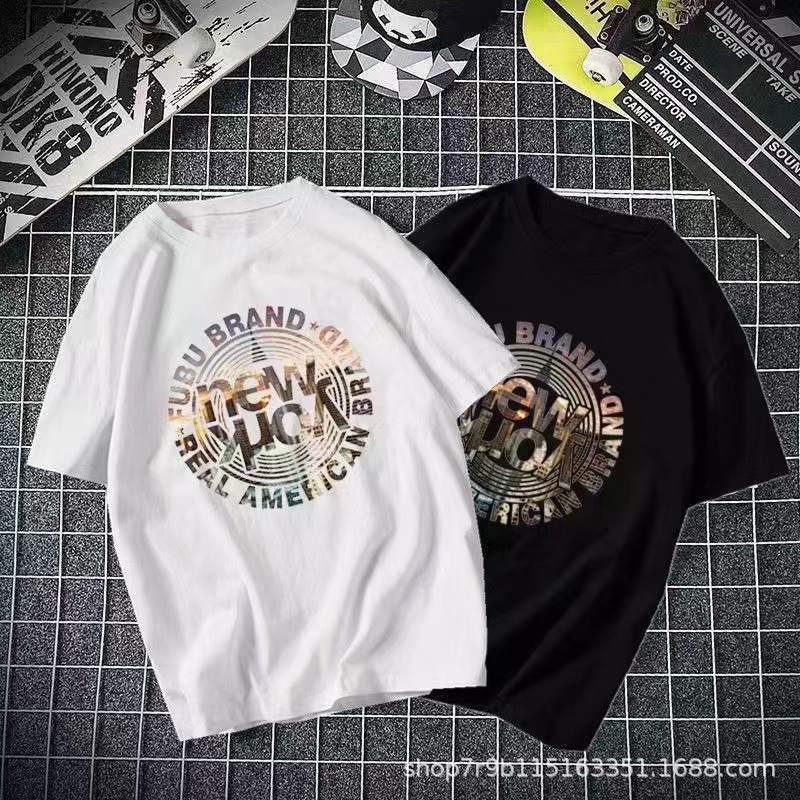 여름 빗질 코튼 반팔 티셔츠 남성용 프린트 라운드 넥 느슨한 유행 코튼 티셔츠 남성용 통기성 플러스 사이즈 청소년스토어 가기