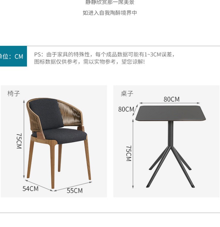 야외 테이블 및 의자 식탁 및 의자 단단한 나무 북유럽 빌라 티크 카페 발코니 조합 등나무 의자 등나무 안뜰 야외스토어 가기