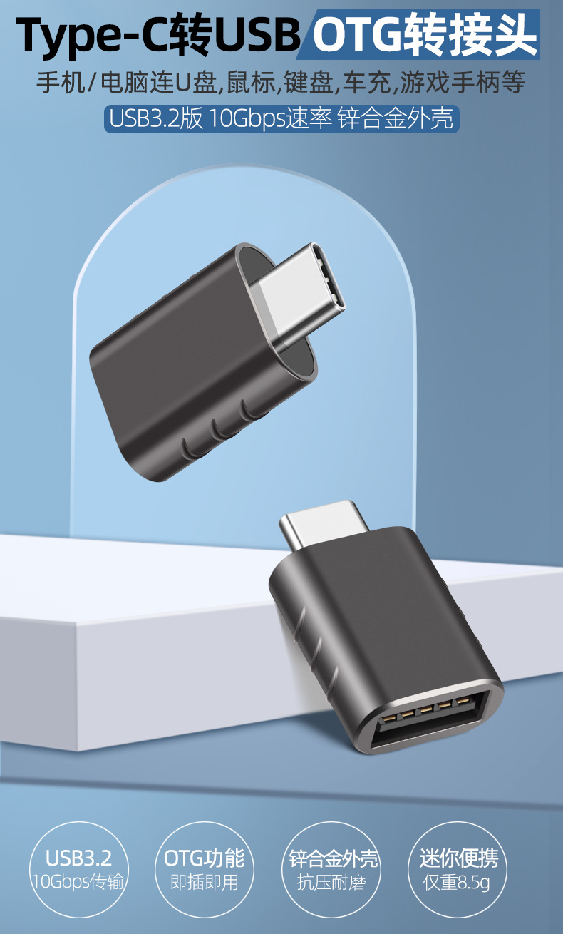 产品名称:otg转接头3.2type-c转usb母转接器C转A母兼容3.1 3.0转换头10Gbps