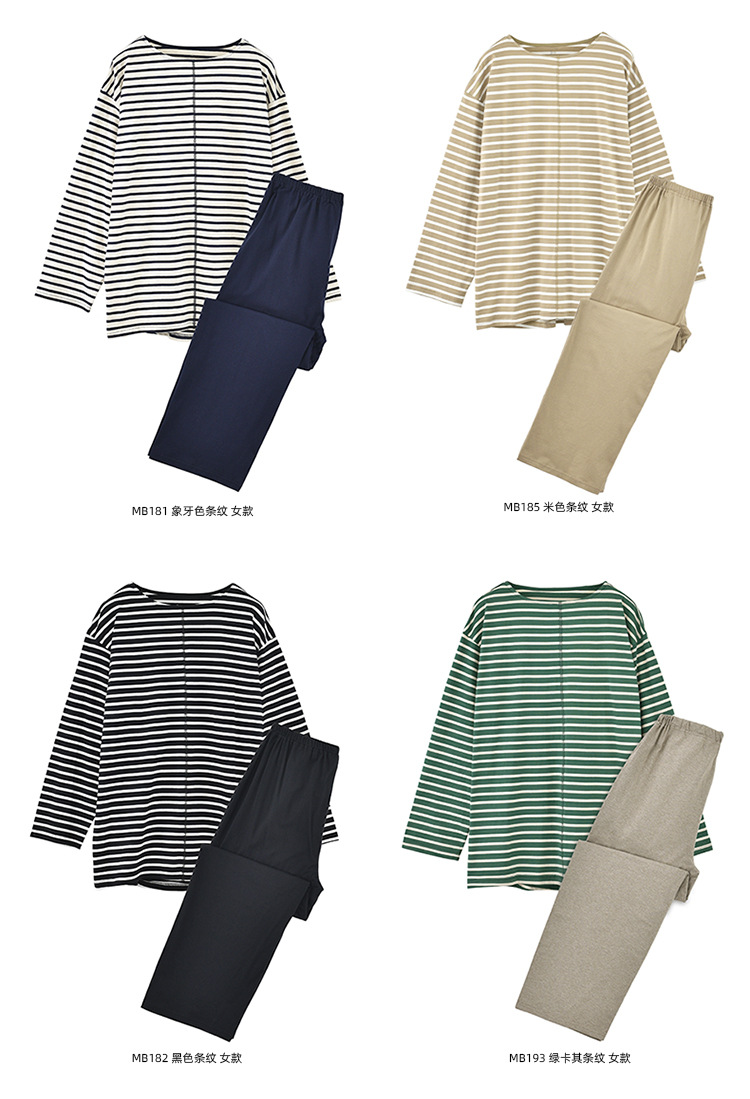 일본식 비 솔기 잠옷 남자와 여자의 줄무늬 가정 옷 니트 순면 Tianzhu 면 생활 옷 세트스토어 가기