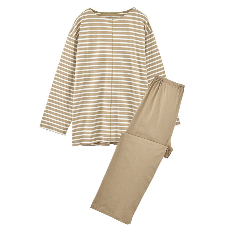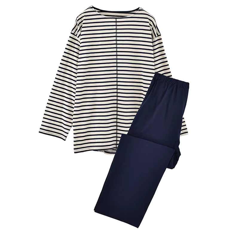 일본식 비 솔기 잠옷 남자와 여자의 줄무늬 가정 옷 니트 순면 Tianzhu 면 생활 옷 세트