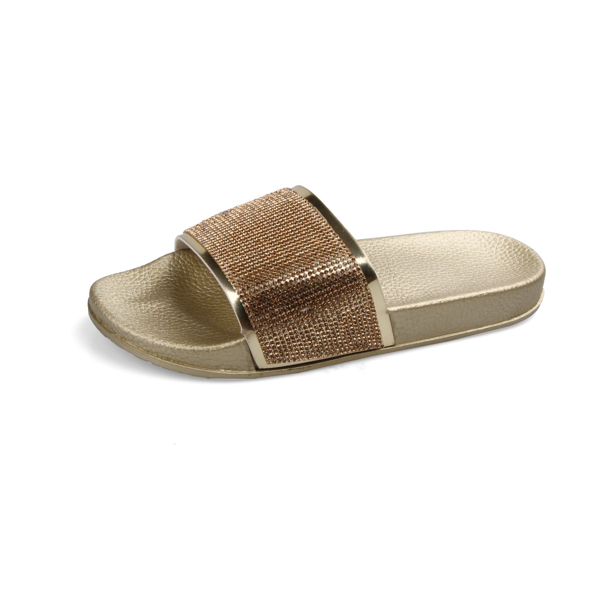 플래시 다이아몬드 슬리퍼 PU 밝은 금속 색상 여성 캐주얼 신발 PVC 불기 공예 접착제 여성 신발