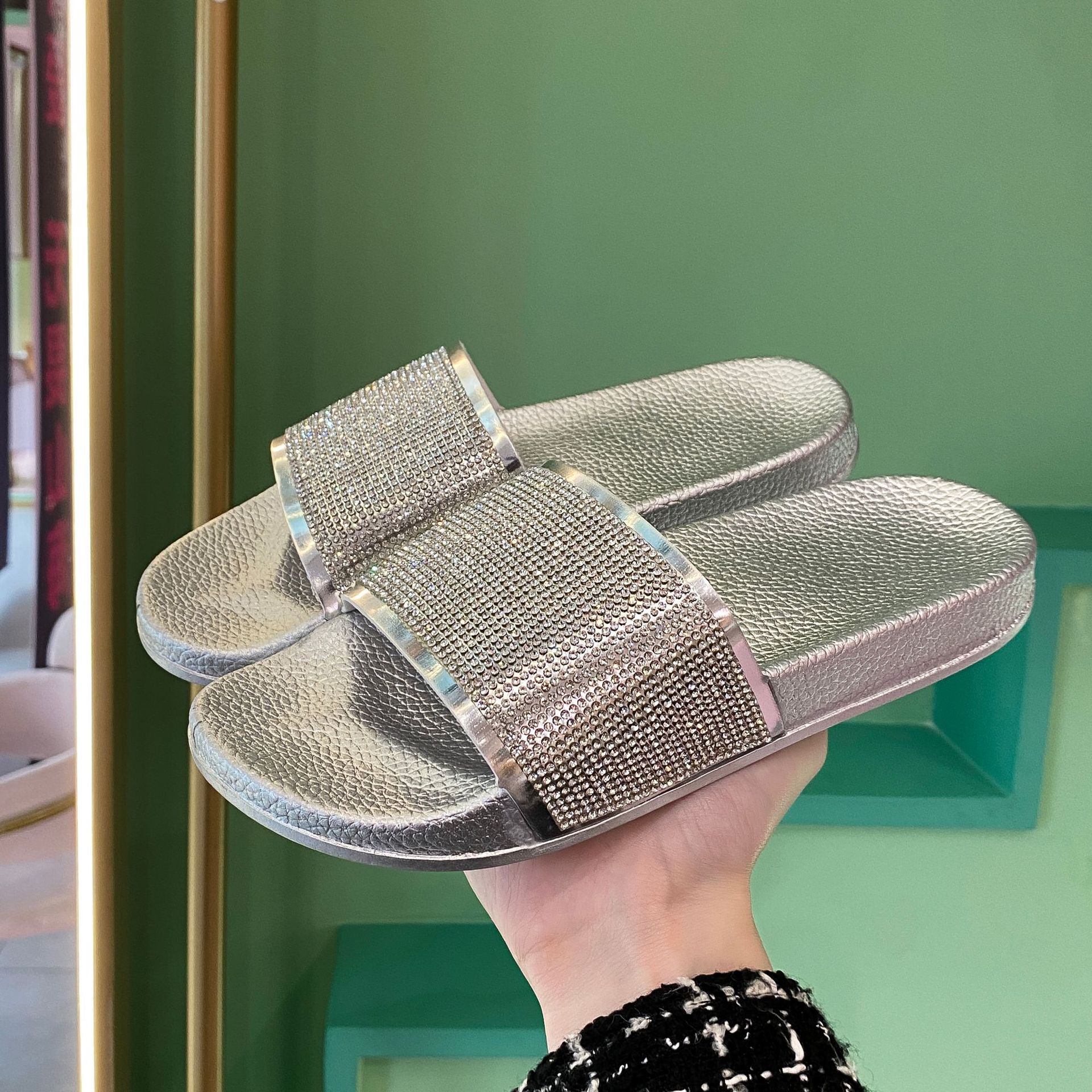 플래시 다이아몬드 슬리퍼 PU 밝은 금속 색상 여성 캐주얼 신발 PVC 불기 공예 접착제 여성 신발스토어 가기