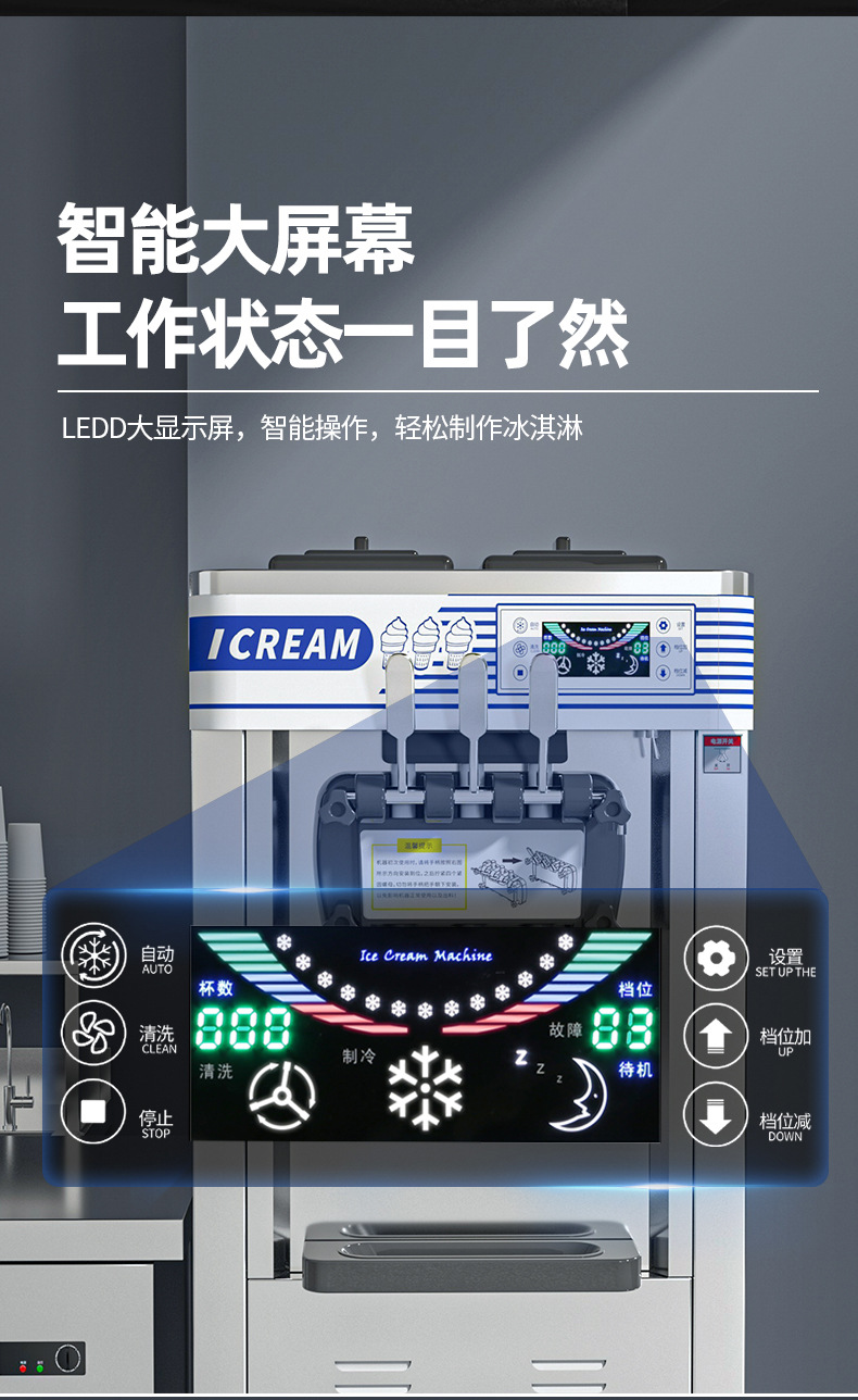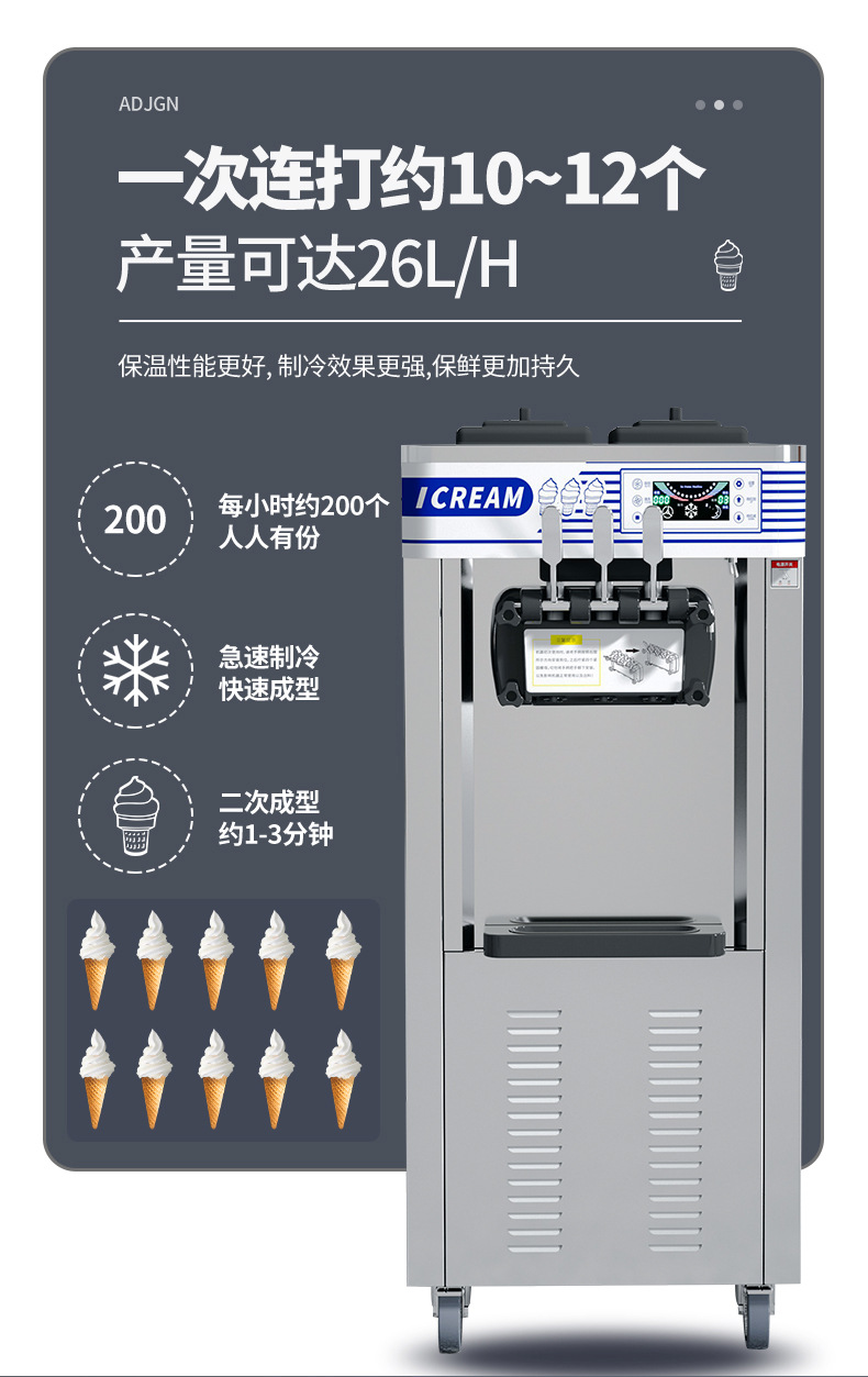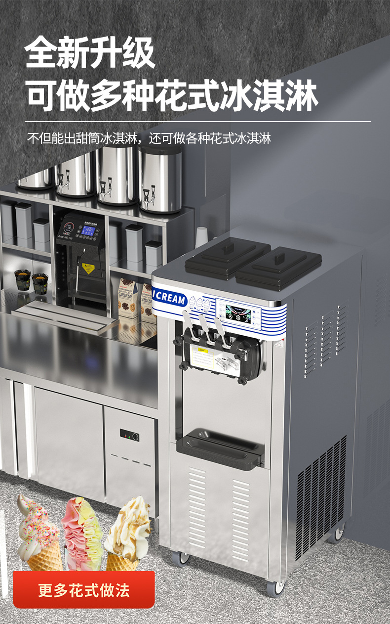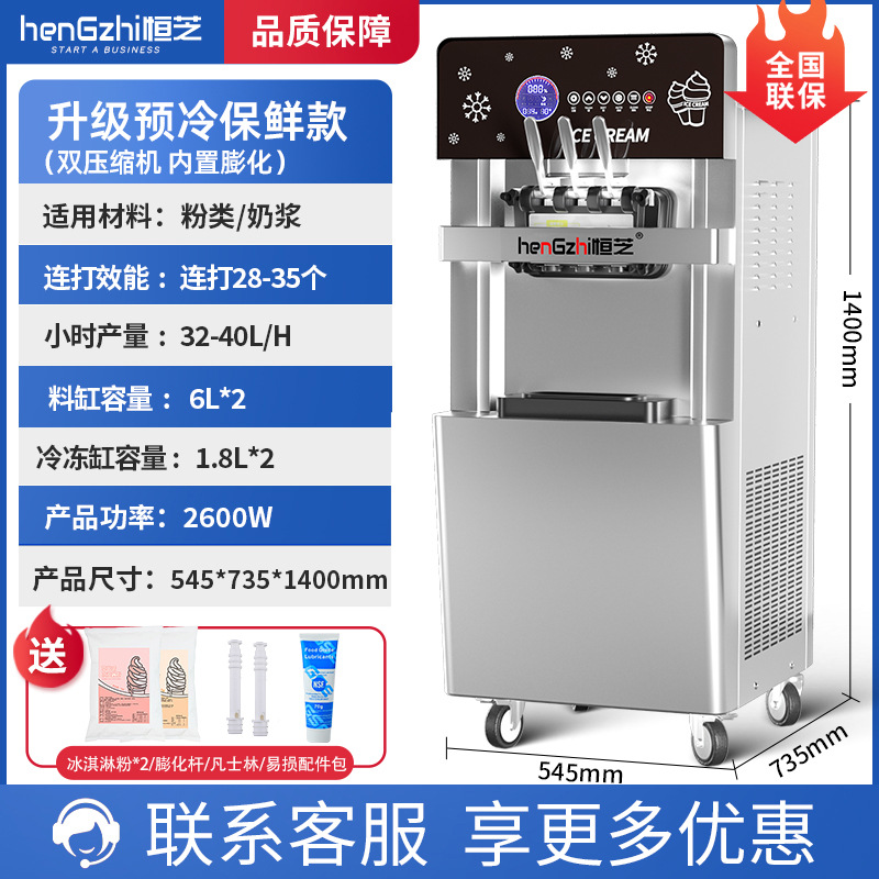 헝지 아이스크림 기계 상업 세로 소형 자동 우유 차 디저트 가게 아이스크림 기계 소프트 아이스크림 기계