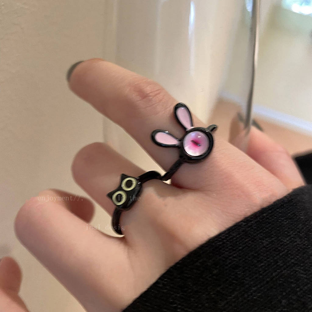 재미있는 검은 새끼 고양이 오픈 링 여성의 틈새 디자인 커플의 가장 친한 친구 손가락 반지 우아한 장식 반지