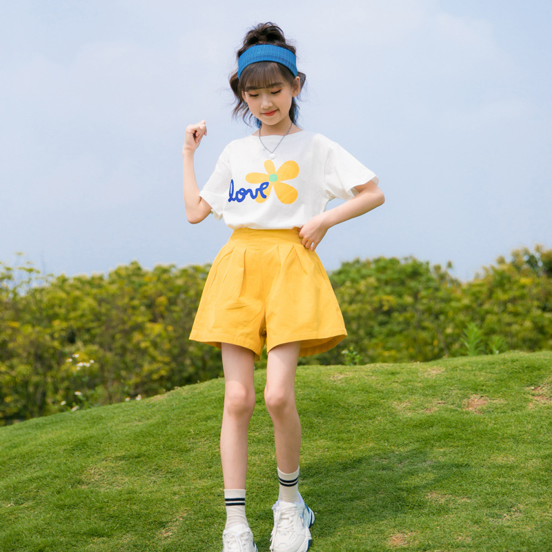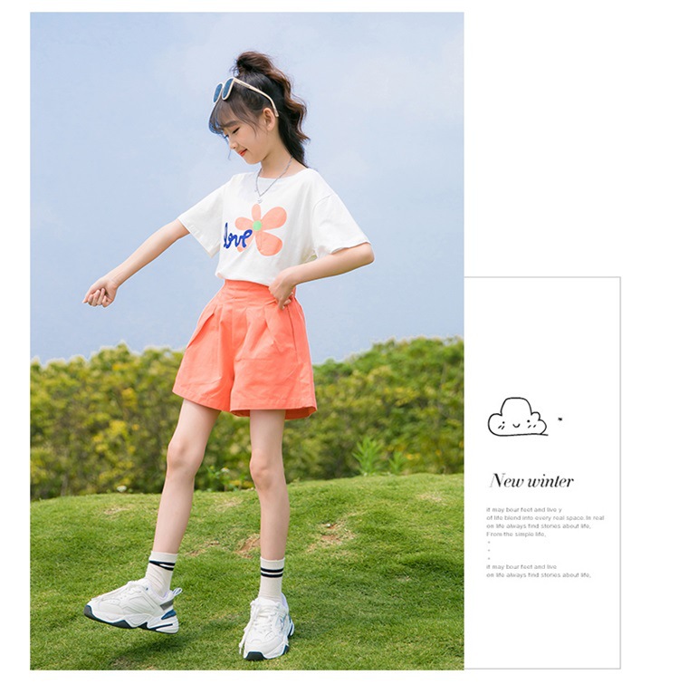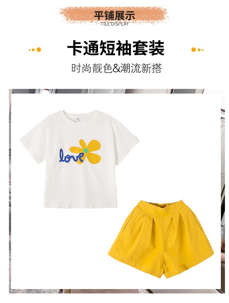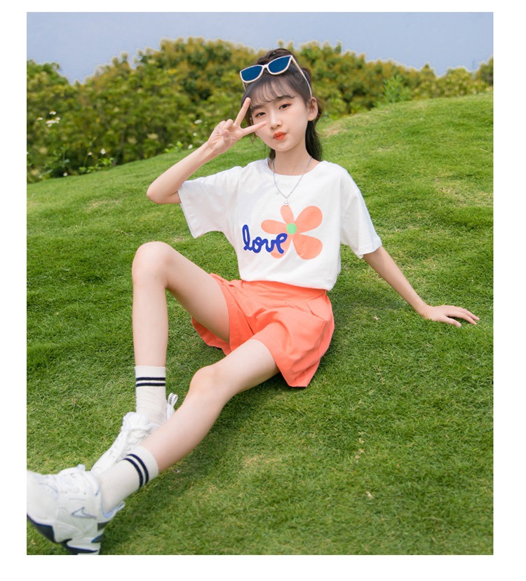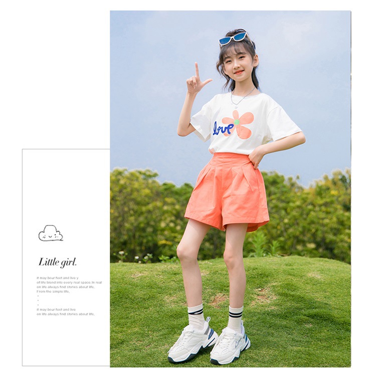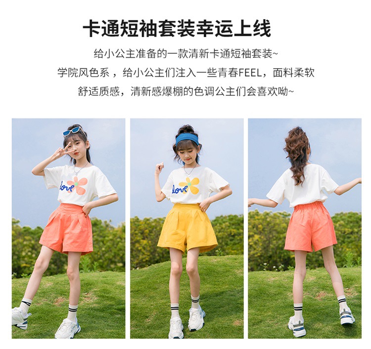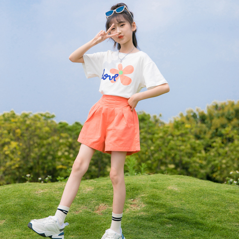 여아 여름 세트 2023 새로운 어린이 서양 스타일 스포츠 레저 리틀 걸 폭발 꽃 반바지 투피스 세트스토어 가기
