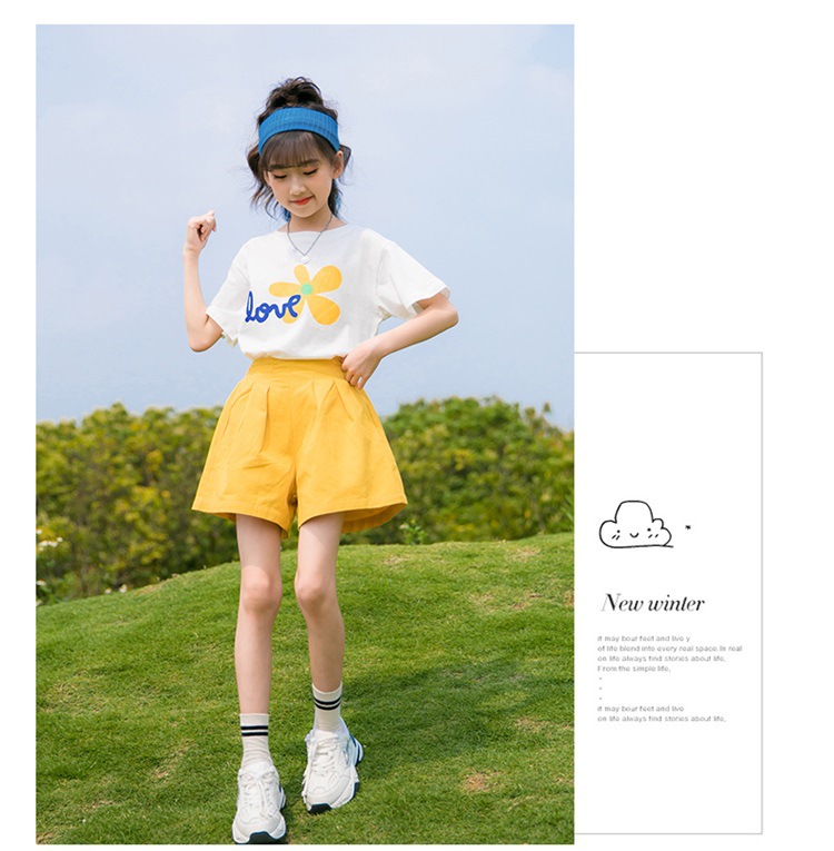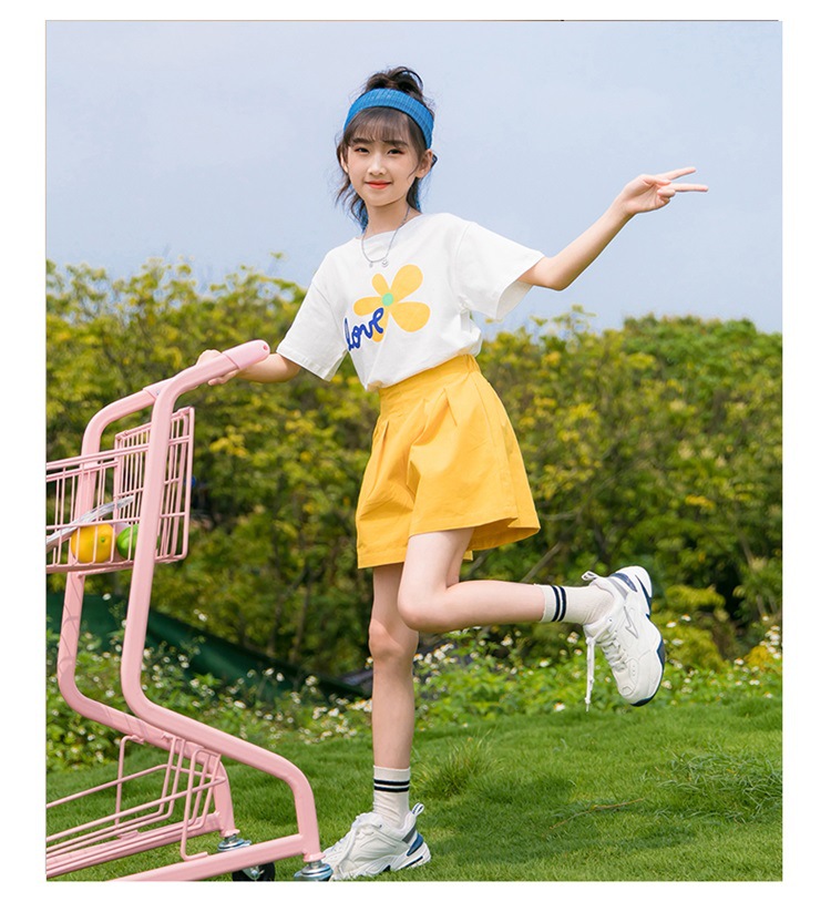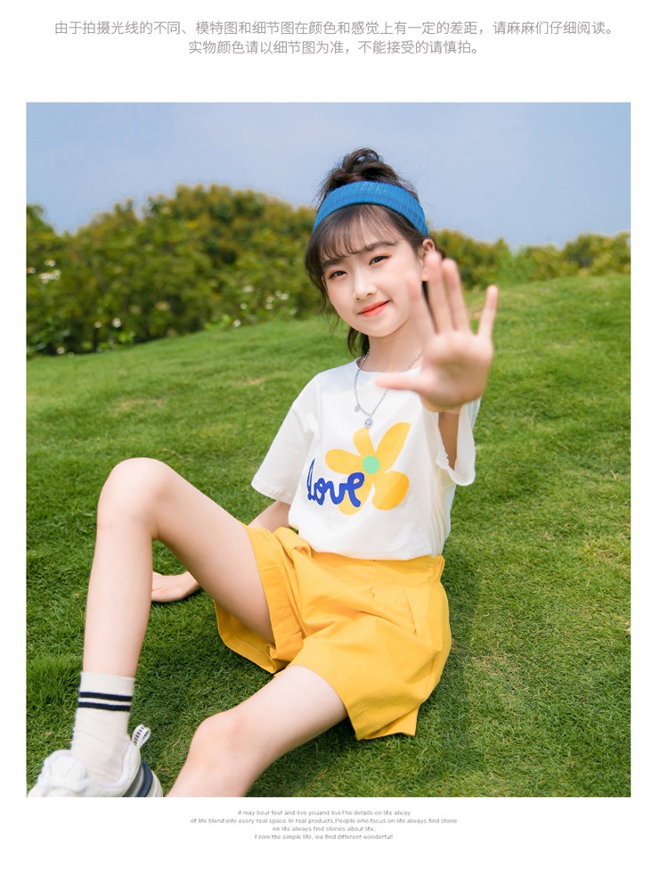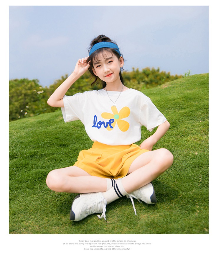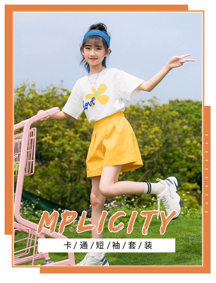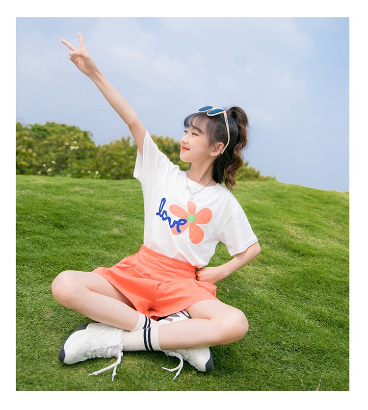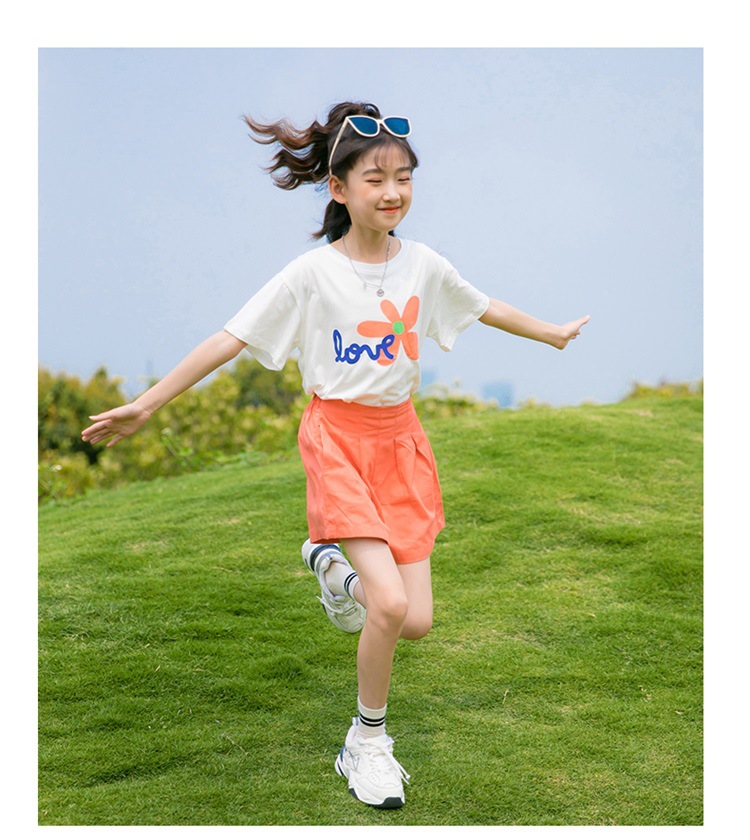 여아 여름 세트 2023 새로운 어린이 서양 스타일 스포츠 레저 리틀 걸 폭발 꽃 반바지 투피스 세트스토어 가기