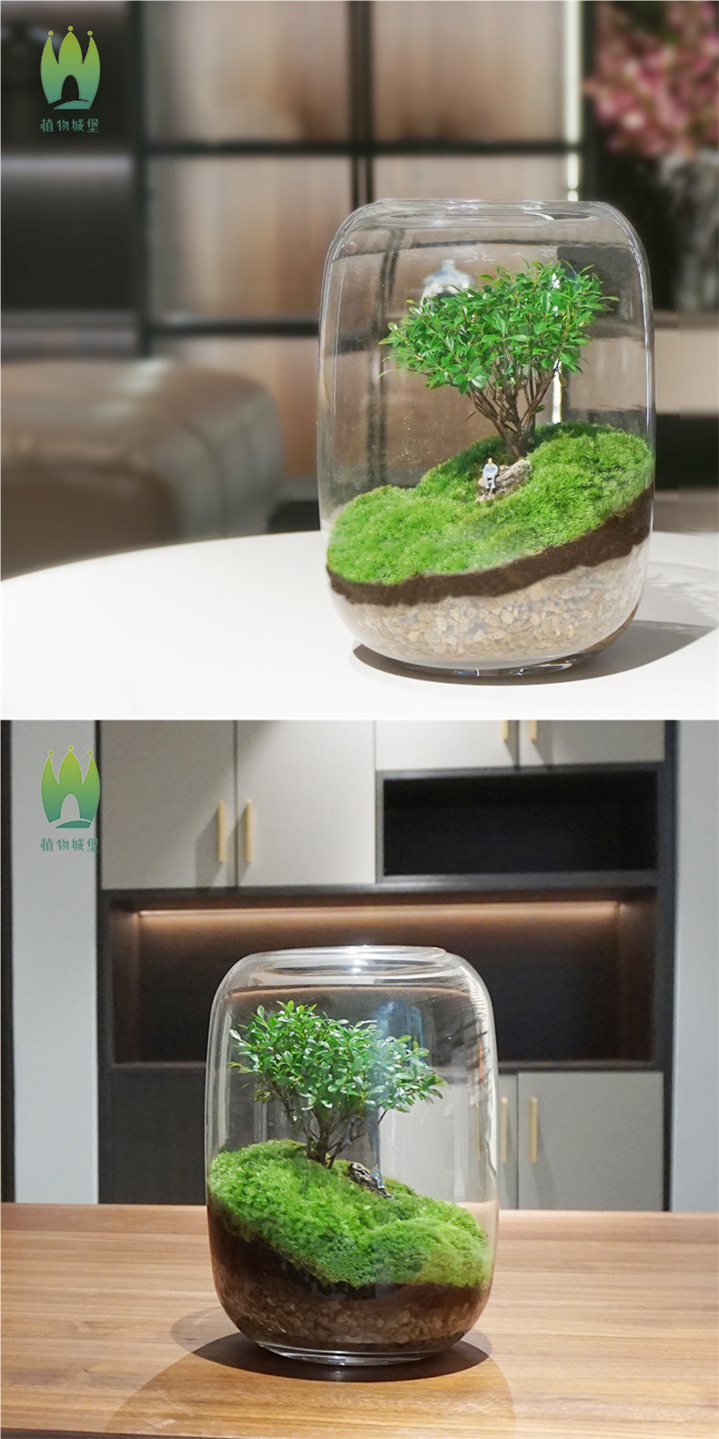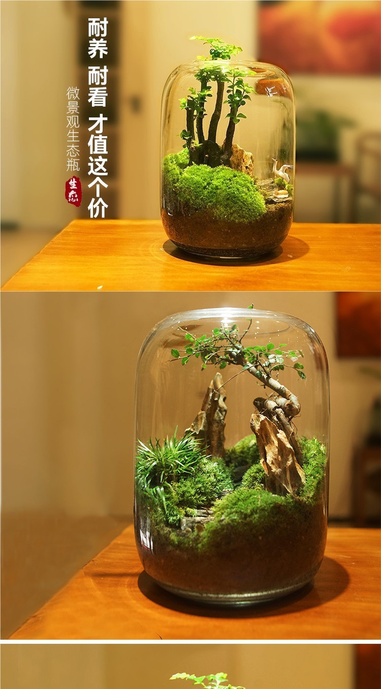 생명의 나무 크리 에이 티브 데스크탑 모스 마이크로 풍경 완성 된 분재 좋은 맞는 신선한 녹색 식물 생태 병 화분 꽃병스토어 가기