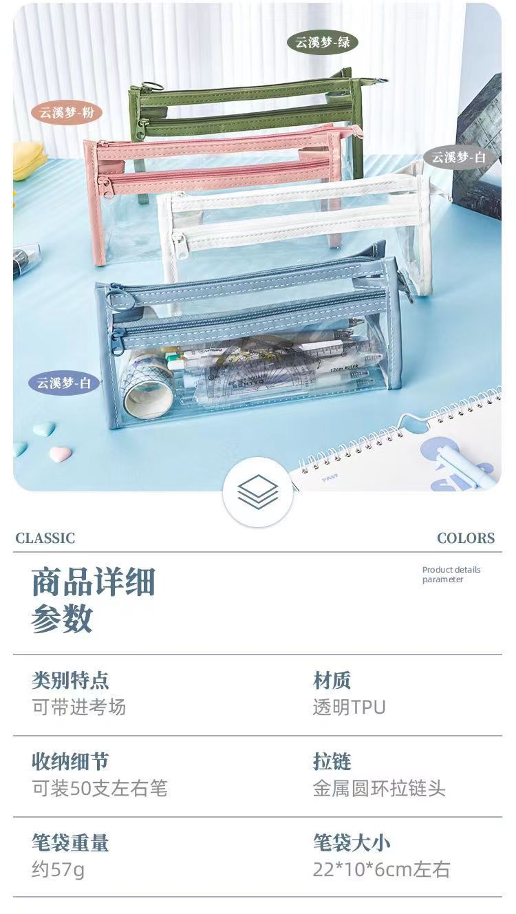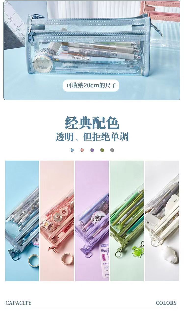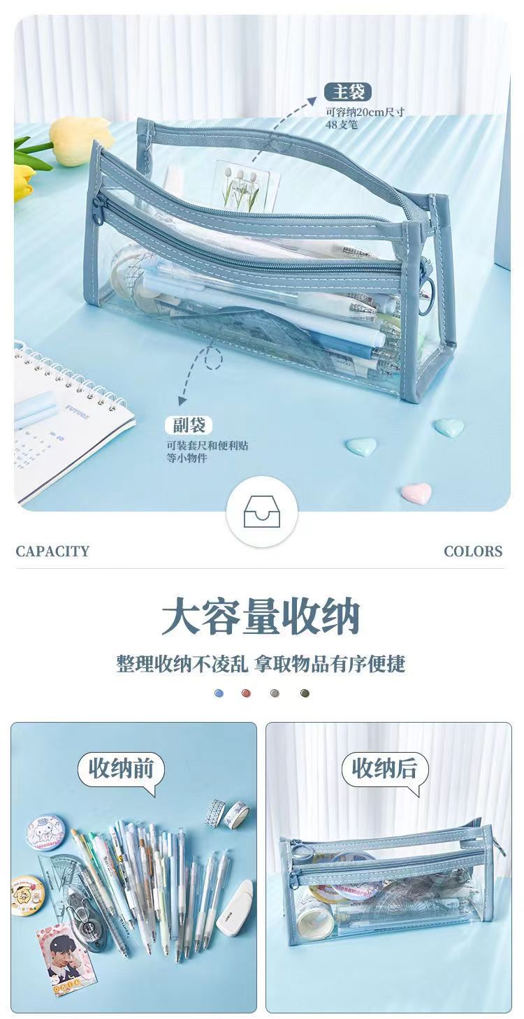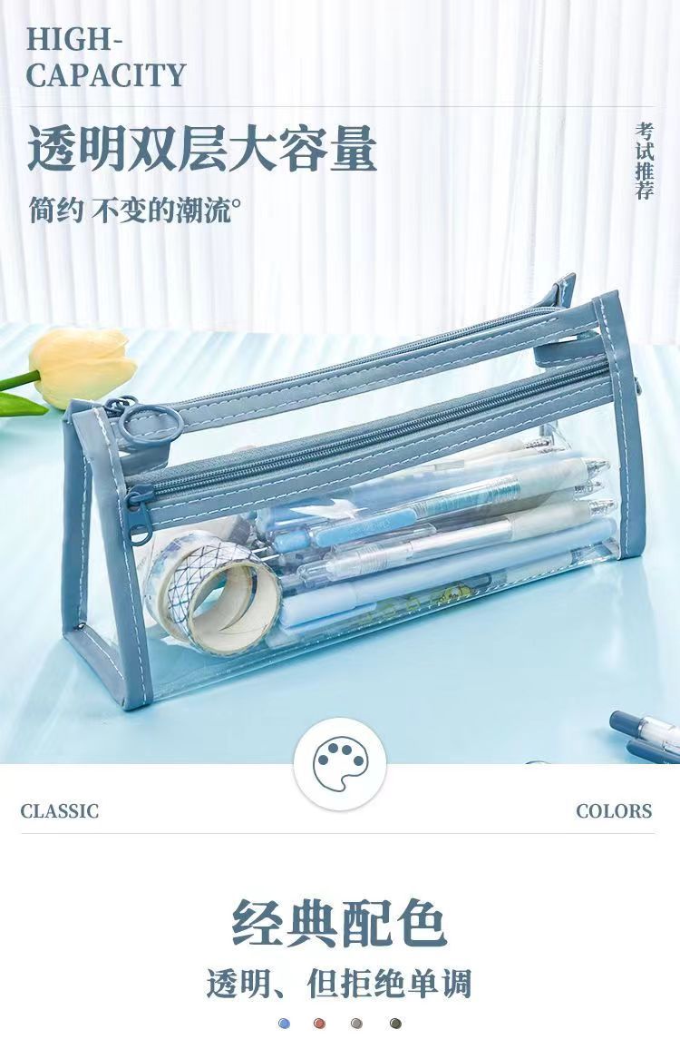 일본의 고가 남녀로 수험 대용량 간단 입시에 특화된 2 중 투명 필통