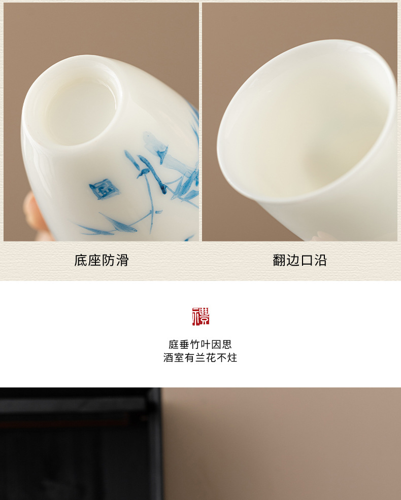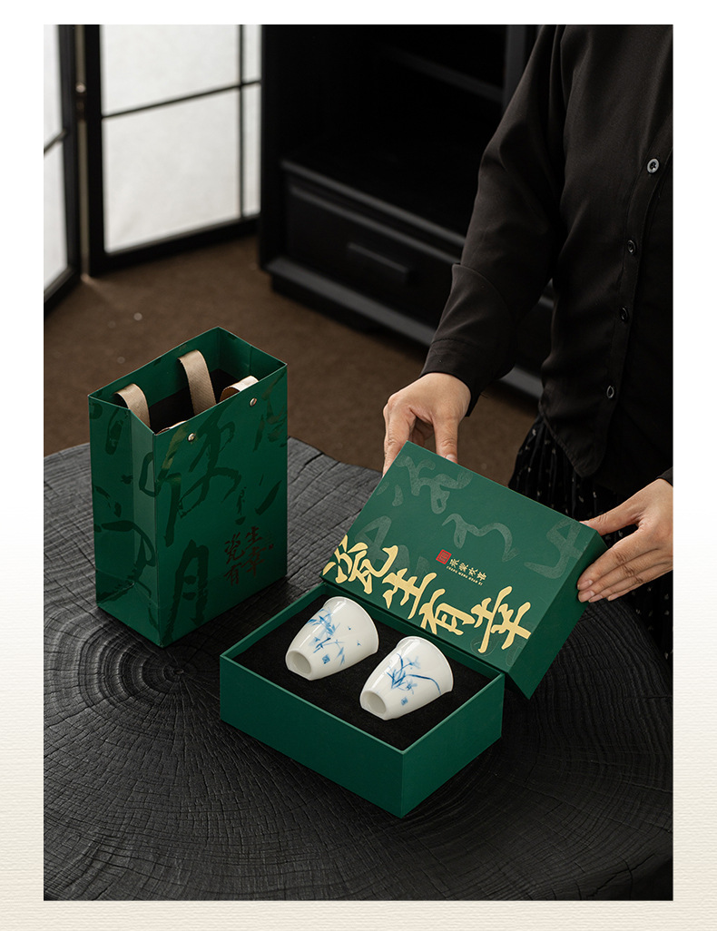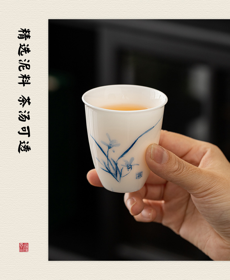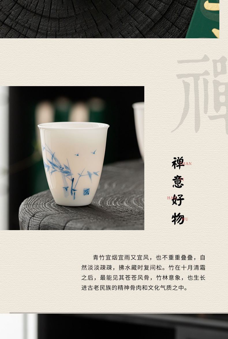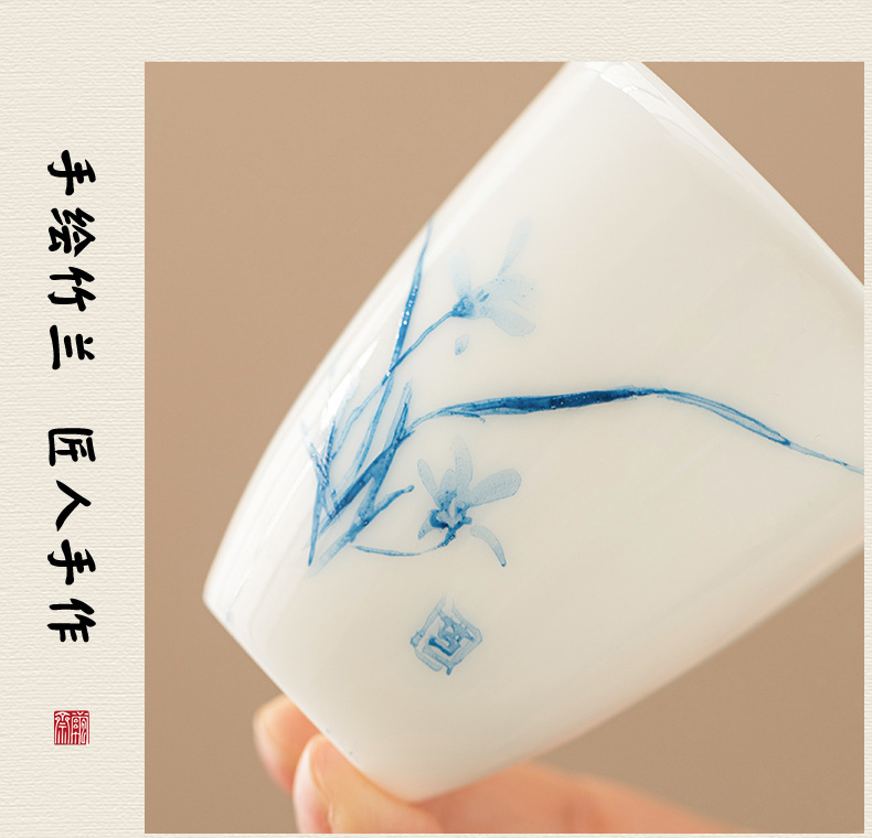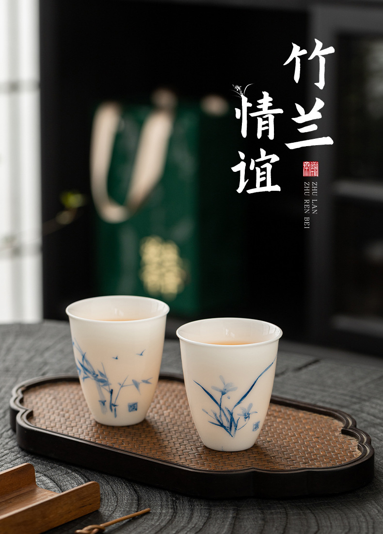 지방 마스터 순수 손으로 그린 데후아 화이트 도자기 찻잔 대나무와 난초 우정 쌍 컵 동반 선물 상자 마스터 컵 컬렉션 인증서스토어 가기