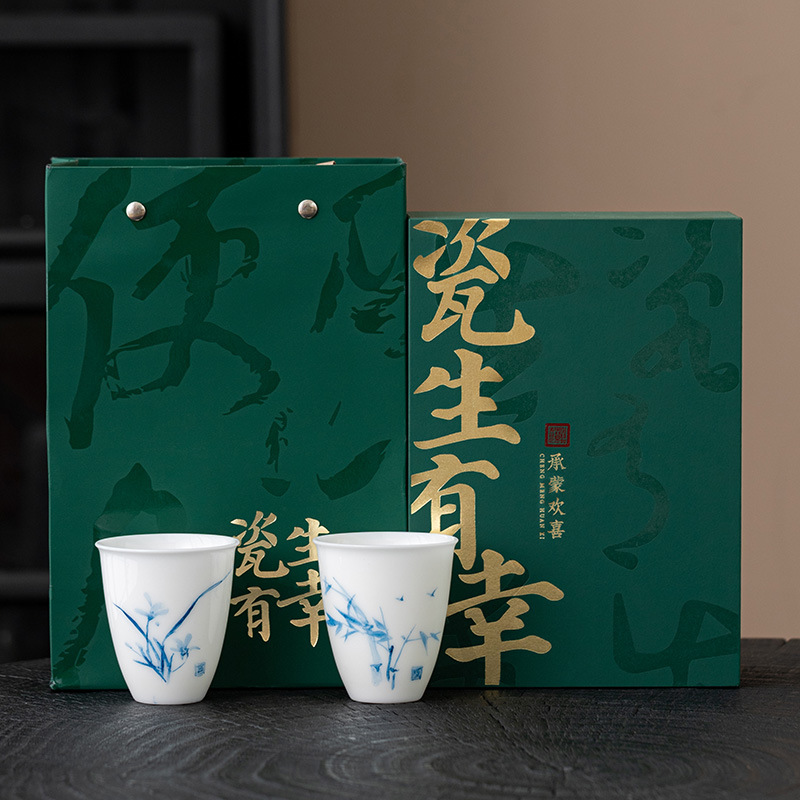지방 마스터 순수 손으로 그린 데후아 화이트 도자기 찻잔 대나무와 난초 우정 쌍 컵 동반 선물 상자 마스터 컵 컬렉션 인증서