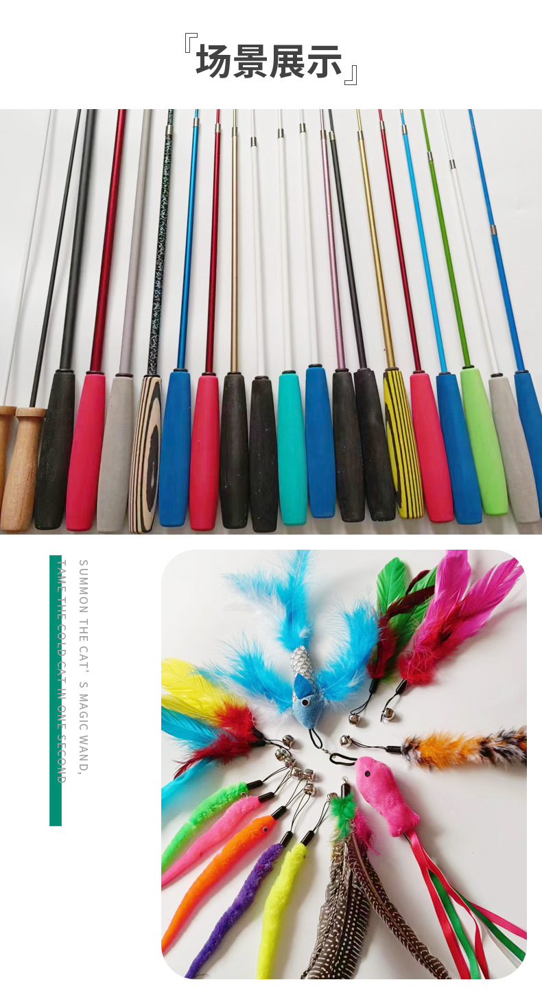 새로운 애완동물 용품 3단 신축형 고양이 장난감 막대 4단 1.8m 고양이 장난감 막대 2단 나무 손잡이 막대