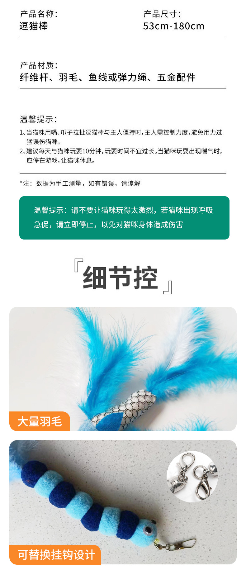새로운 애완동물 용품 3단 신축형 고양이 장난감 막대 4단 1.8m 고양이 장난감 막대 2단 나무 손잡이 막대스토어 가기