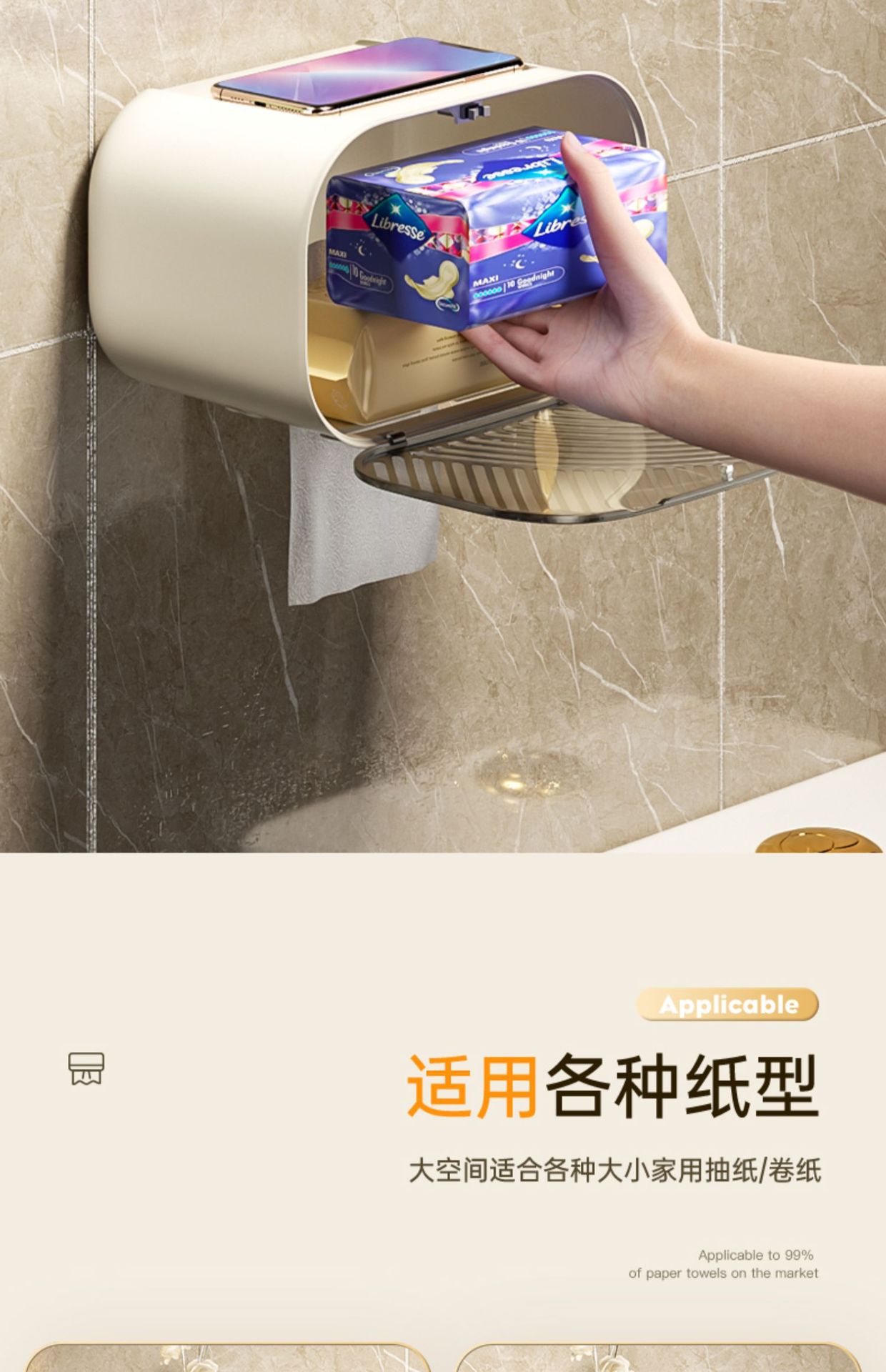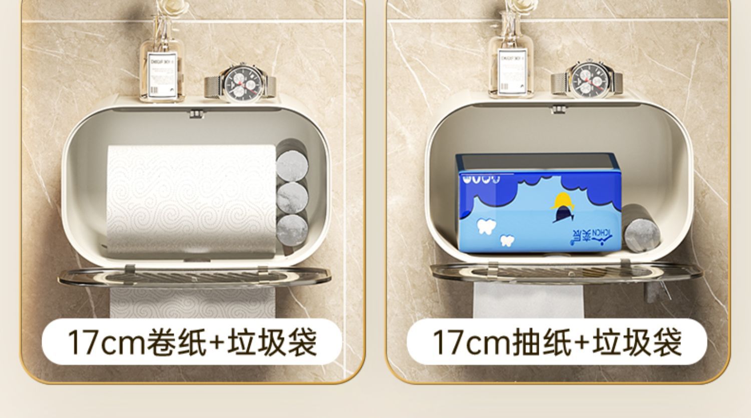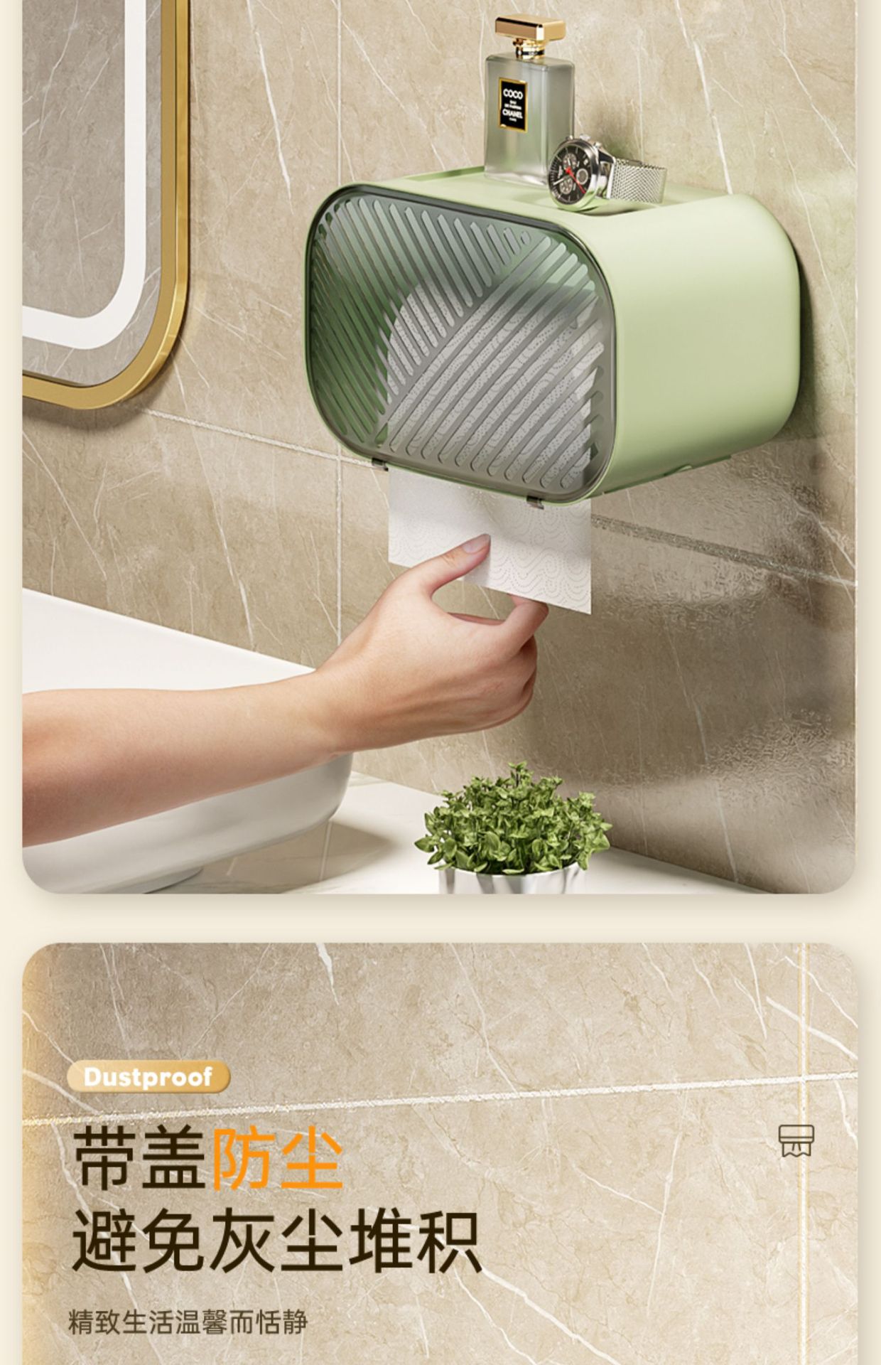 가벼운 고급 벽걸이 화장실 티슈 상자 방수 펀치 프리 화장실 드로어블 종이 롤 종이 보관 랙 다기능 티슈 홀더