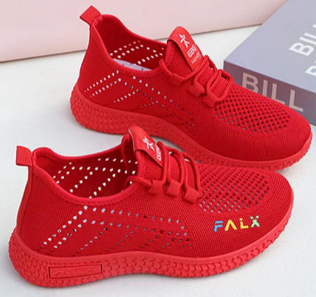 여성 신발 2024 봄 여름 신상 레드 컬러 원년 운동화 메쉬 소재 다용도 스포츠 캐주얼 런닝화 트렌디 슈즈