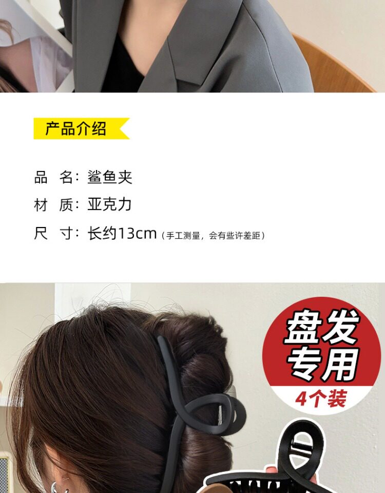 대형 크로스 그랩 클립 여성용 젖빛 머리핀 머리 플레이트의 우아한 머리핀 머리 그랩 상어 클립 모자스토어 가기