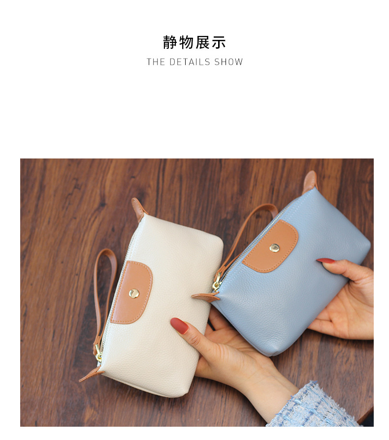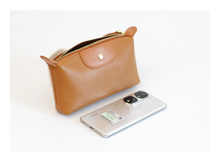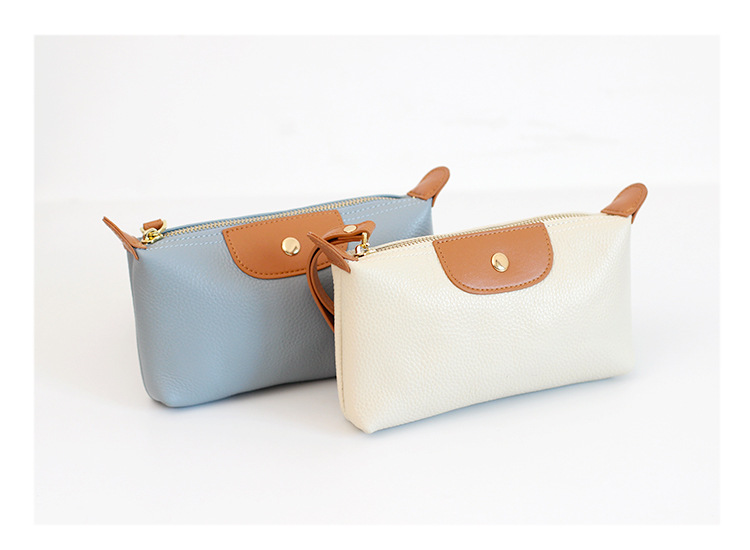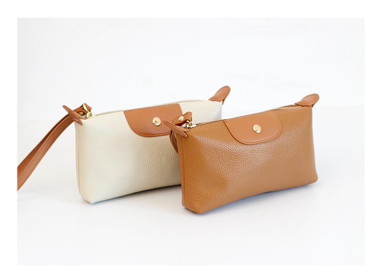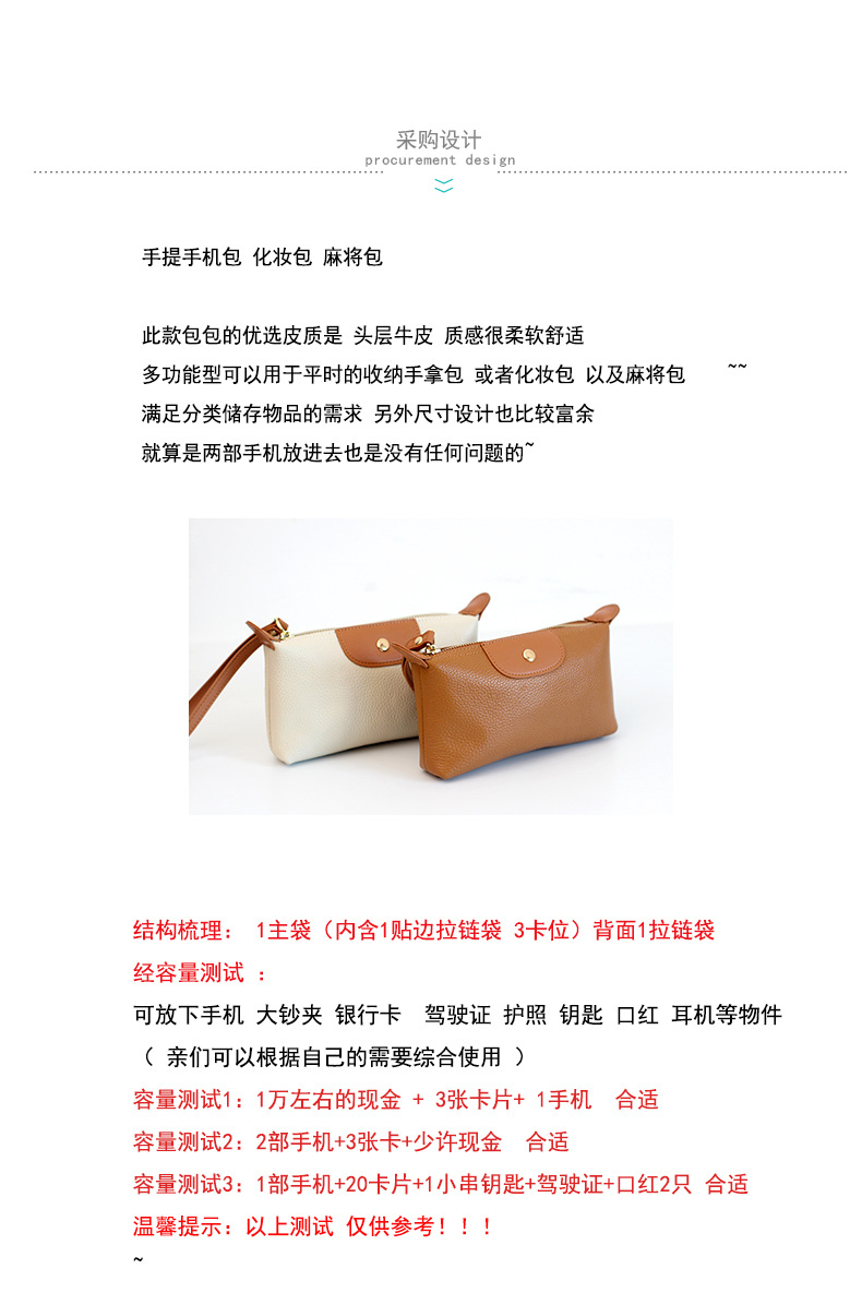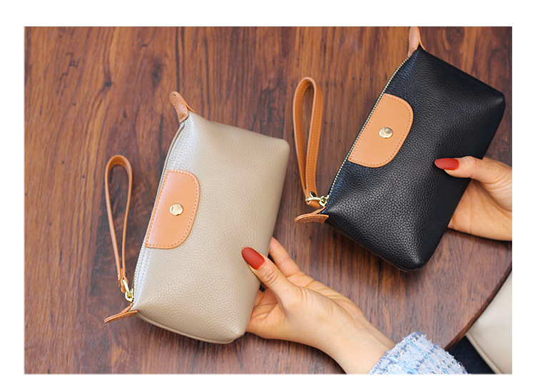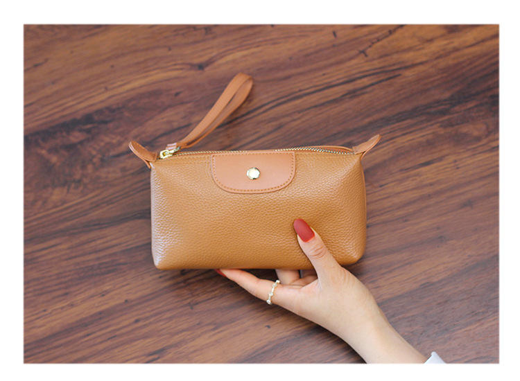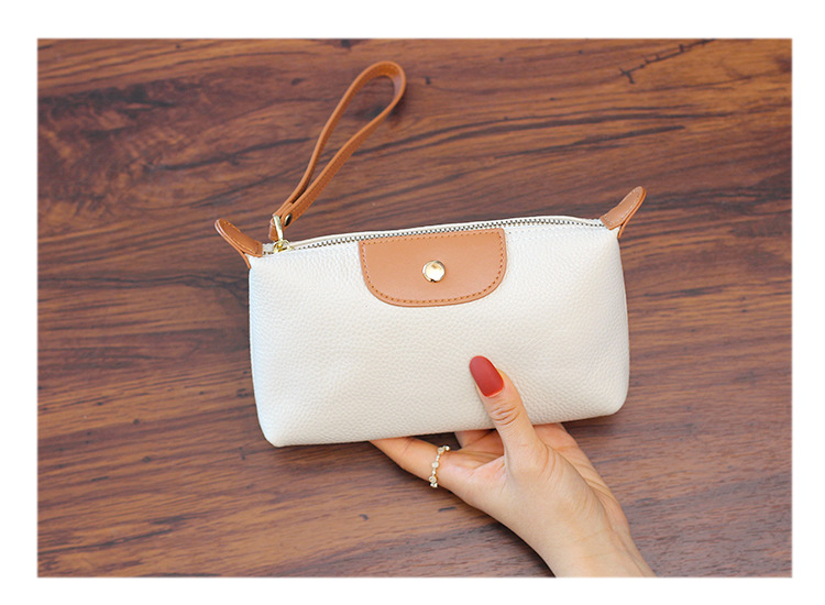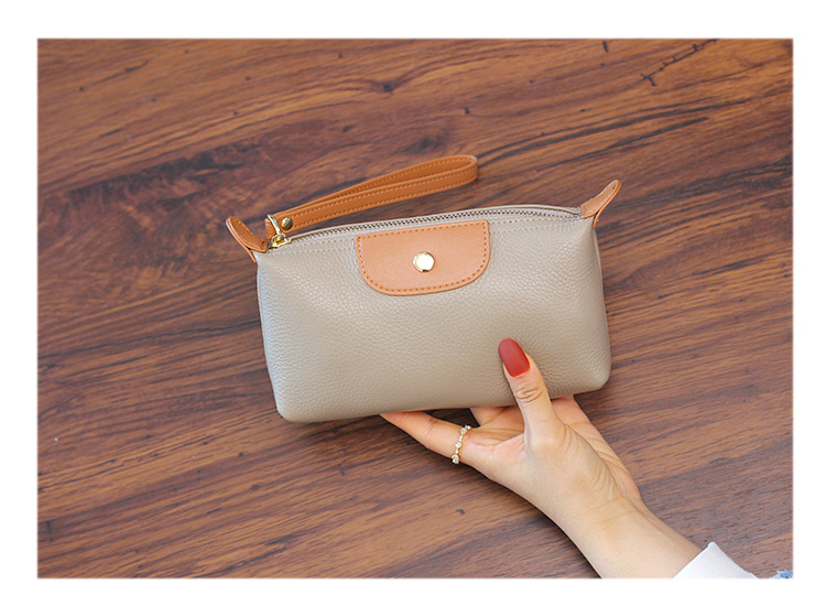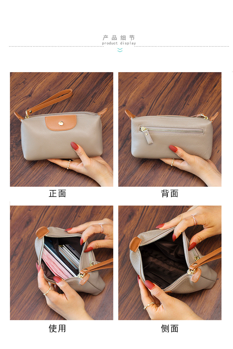 정품 가죽 클러치 백 여성용 우아한 휴대 전화 소가죽 손목 밴드 부드러운 가죽 지퍼 긴 지갑 여성용 화장품 가방스토어 가기