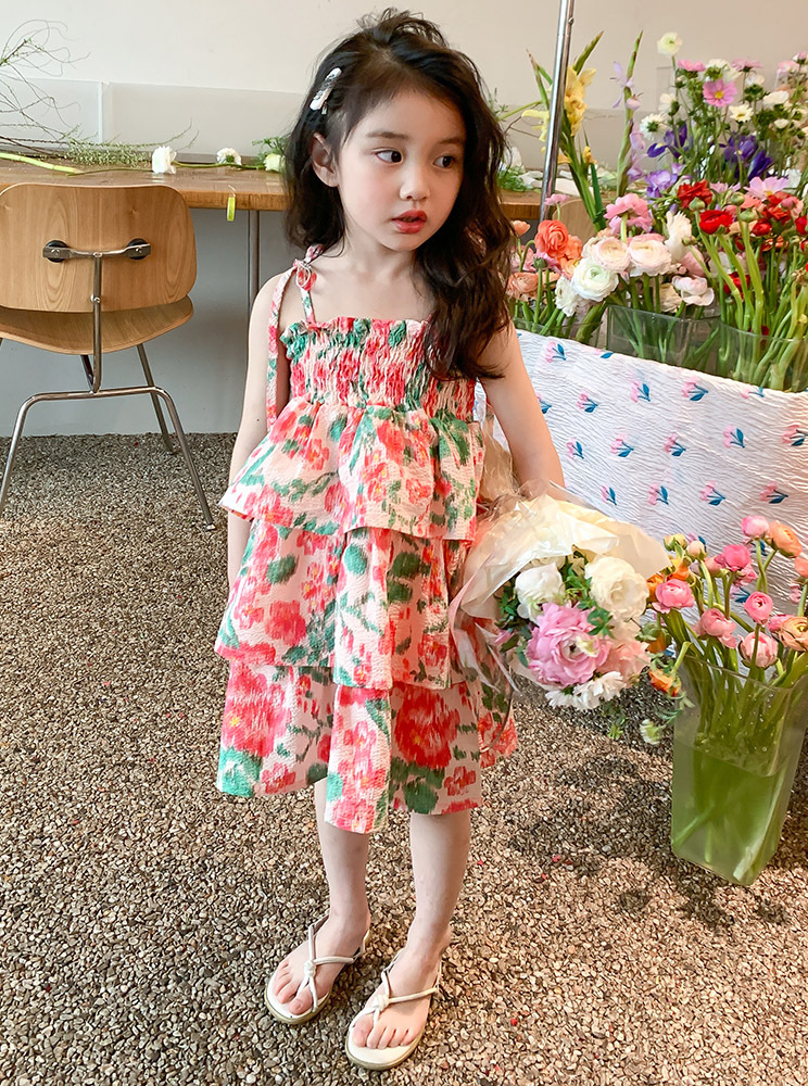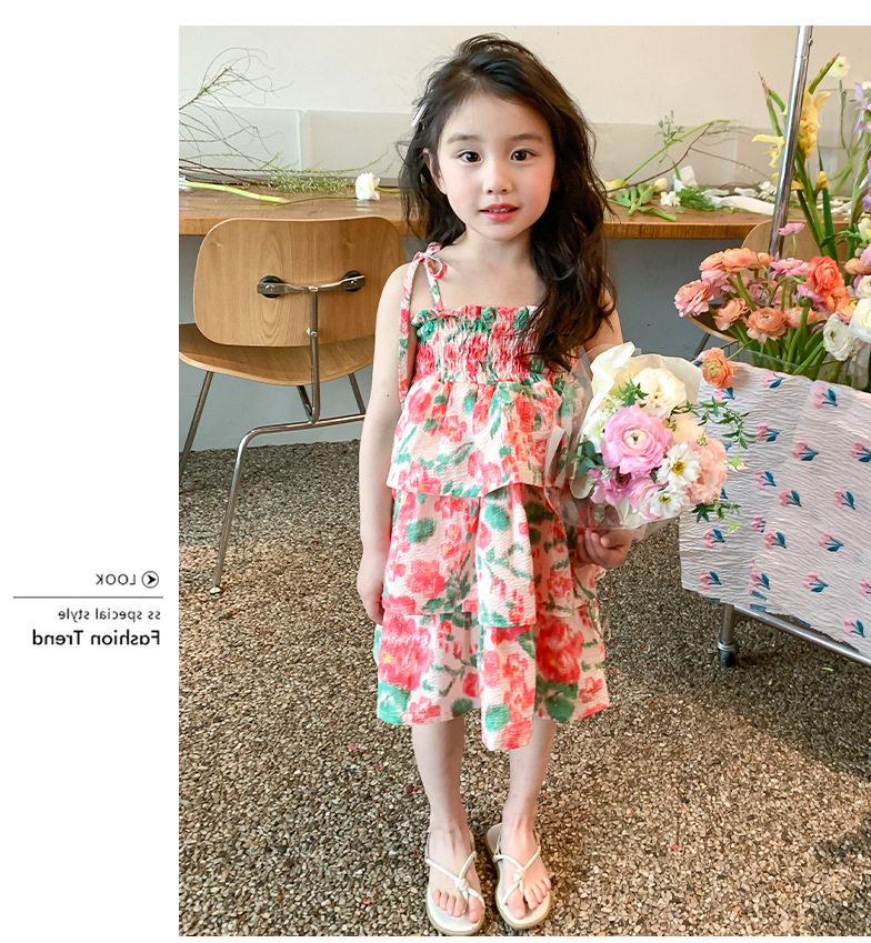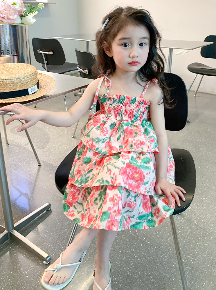 여자 스커트 꽃 구겨진 케이크 스커트 드레스 공주 스커트 25 여름 드레스 새로운 대외 무역 아동 의류 세대스토어 가기