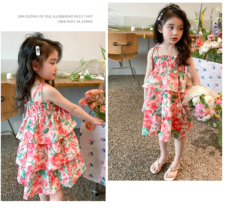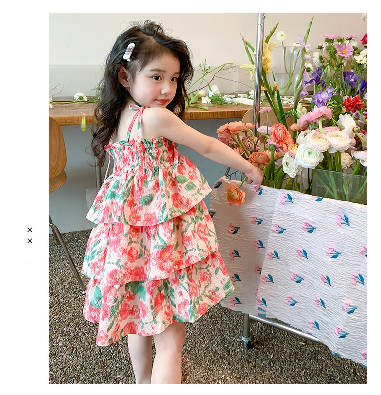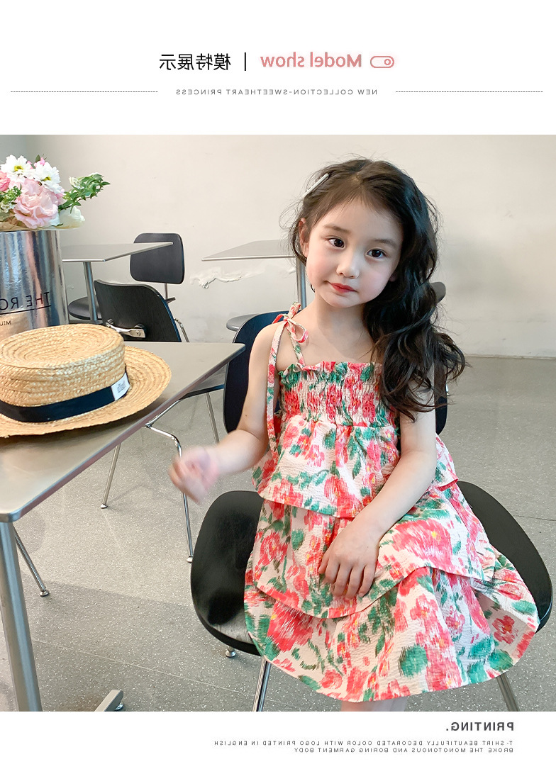 여자 스커트 꽃 구겨진 케이크 스커트 드레스 공주 스커트 25 여름 드레스 새로운 대외 무역 아동 의류 세대