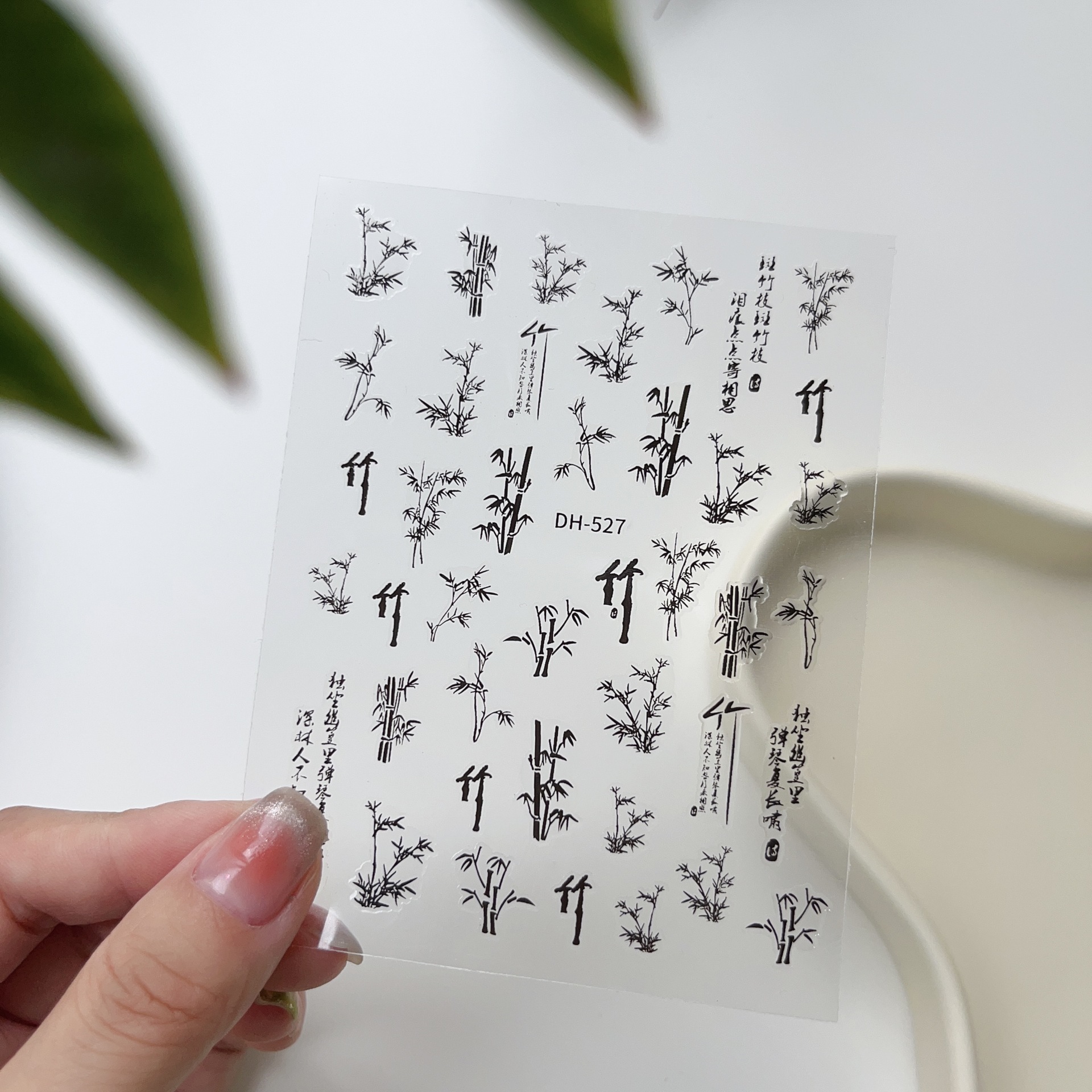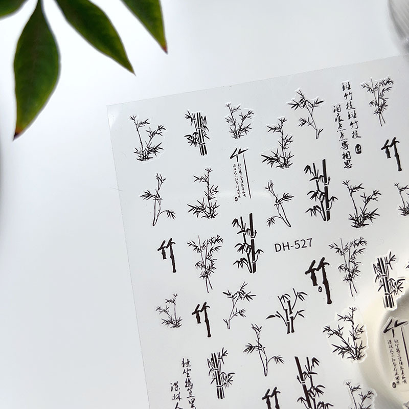 그물 빨간 네일 아트 중국식 잉크 대나무 스티커 복고풍 대나무 잎 접착제 손톱 얇은 터프 데칼 보석 도매스토어 가기