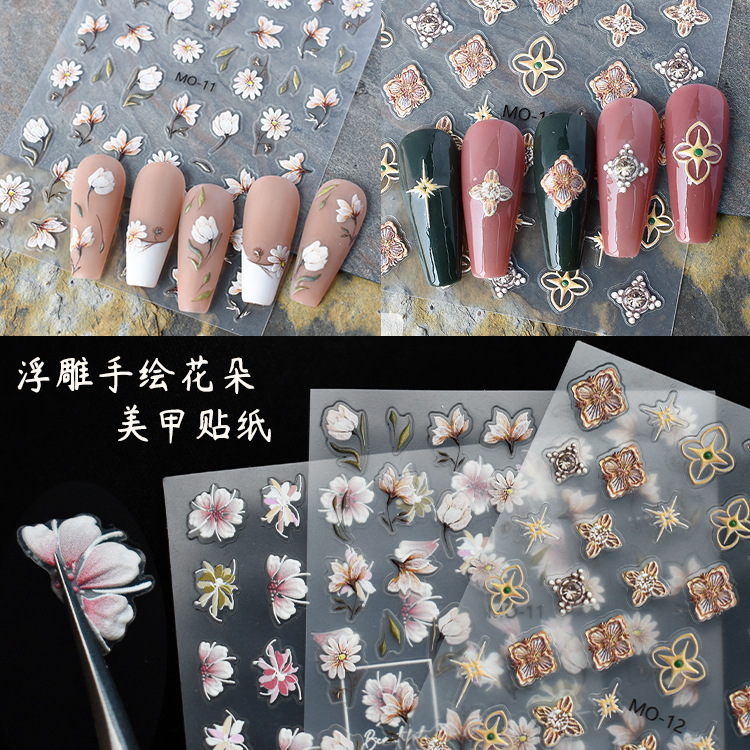 사이버 연예인 프놈펜 튤립 네일 아트 스티커 얇은 터프 마이크로 릴리프 스테레오 꽃 작고 신선한 일본과 한국 네일 스티커스토어 가기