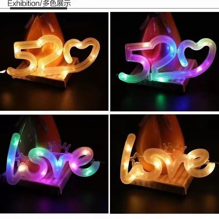 발렌타인 데이 LED 장식 조명 생일 케이크 선물 상자 꽃 꽃다발 꽃 포장 LOVE 발광 문자 문자열 조명