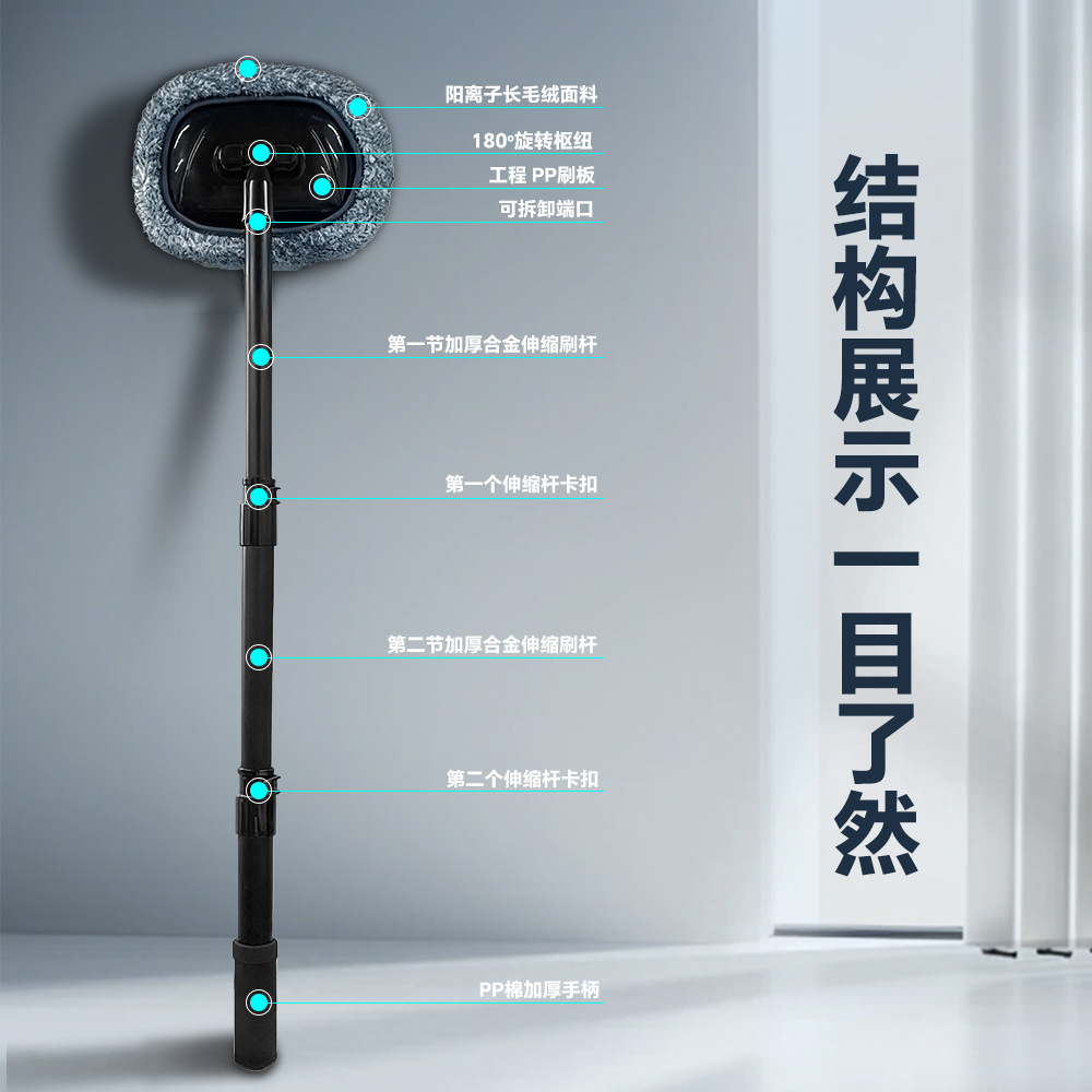 【产品尺寸】:拖头27*15cm杆长50cm伸缩后102cm 四节杆 杆长:伸缩后133CM 带拖把头141CM