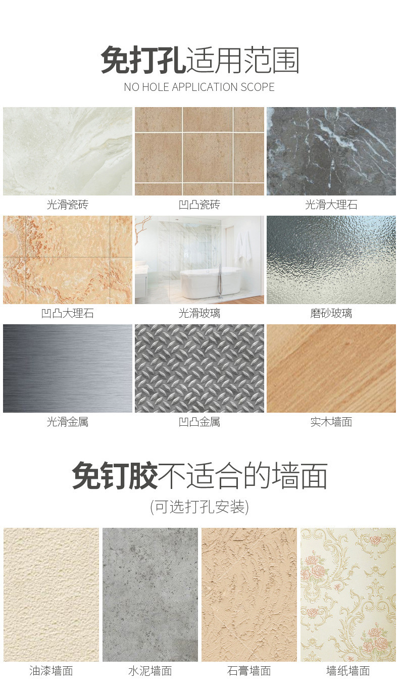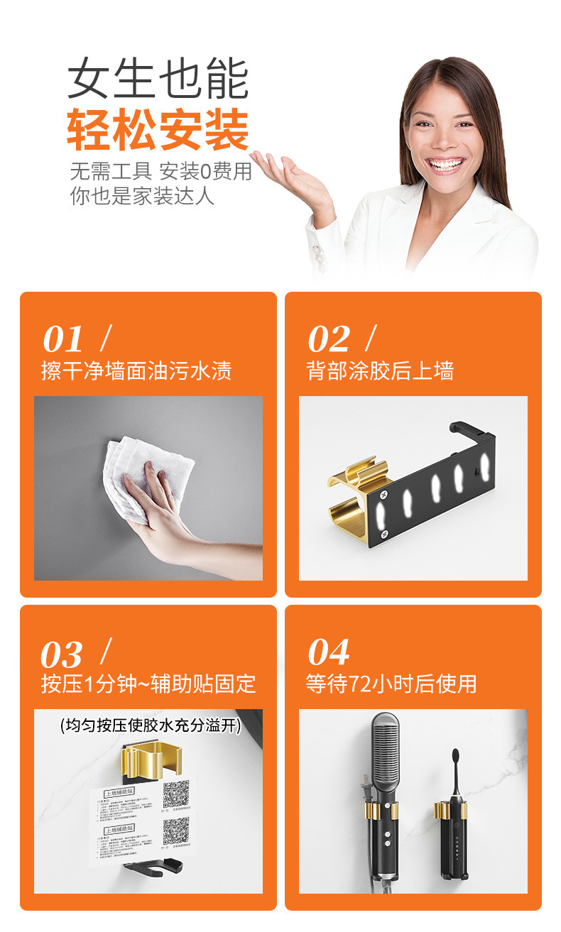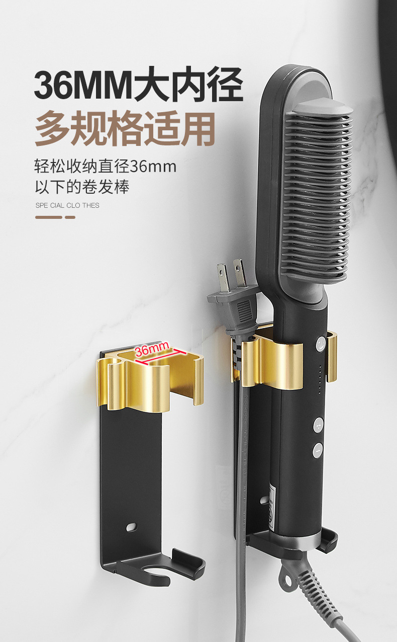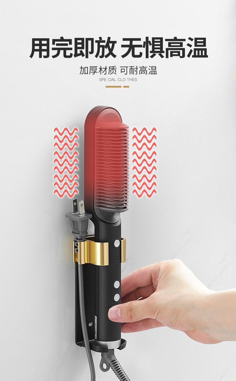 욕실 무타공 벽걸이 빗, 고데기, 헤어 스타일링 도구 보관대, 욕실 걸이형 수납 선반스토어 가기