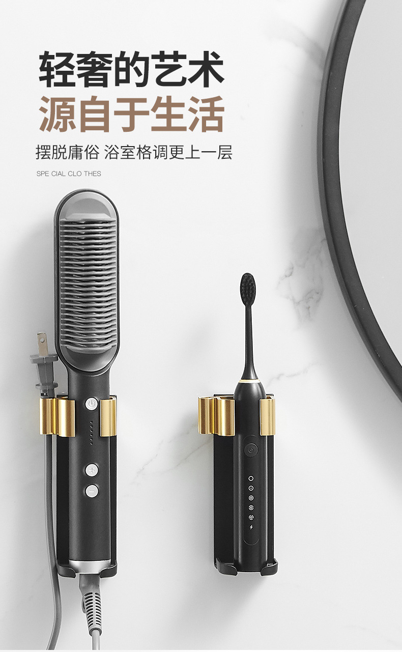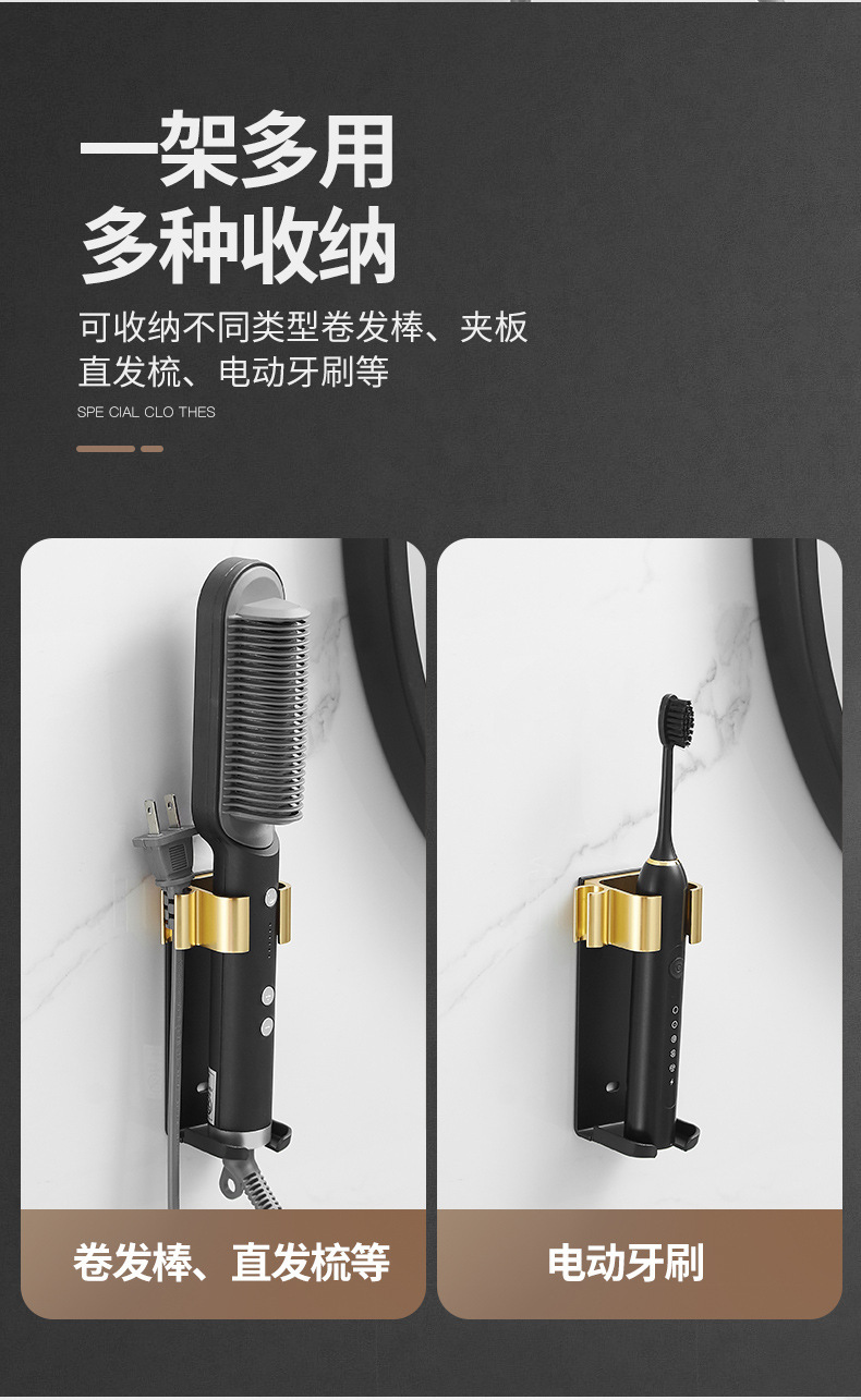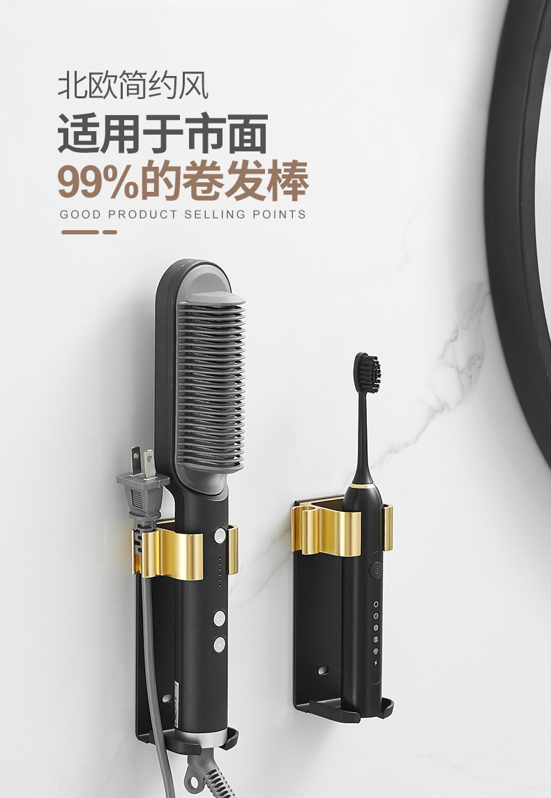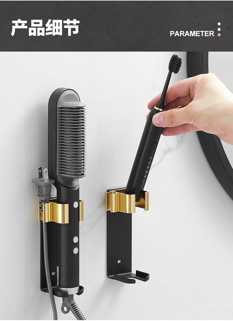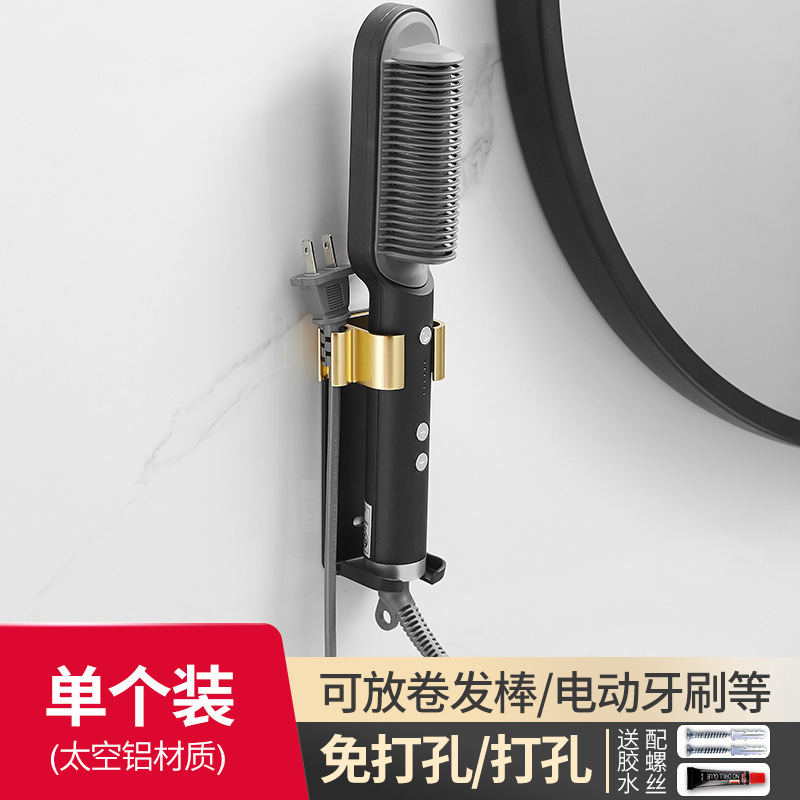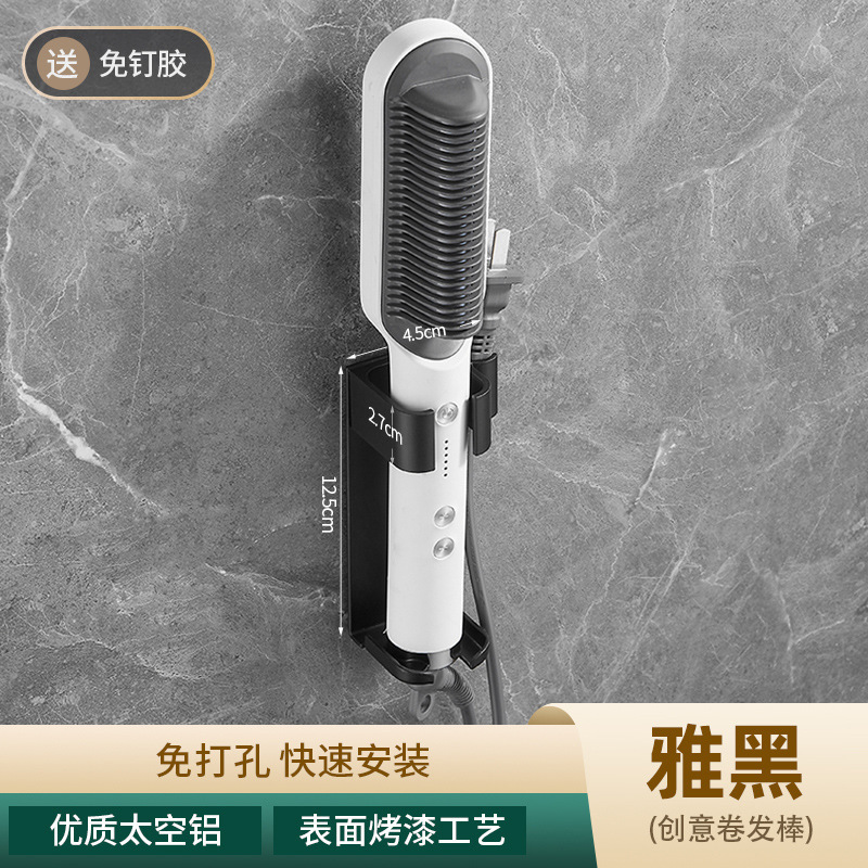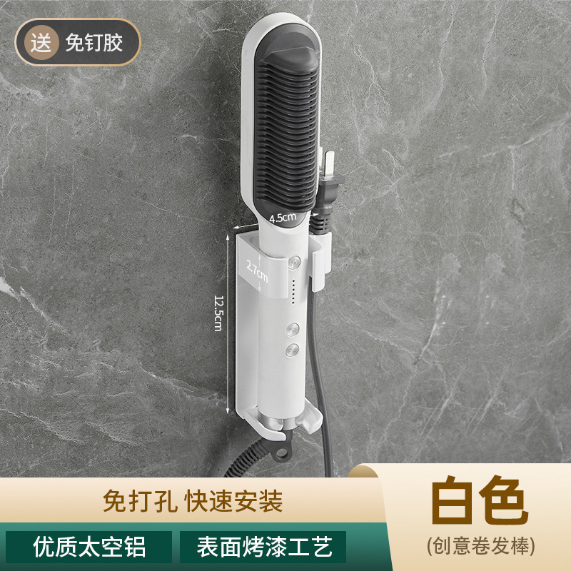욕실 무타공 벽걸이 빗, 고데기, 헤어 스타일링 도구 보관대, 욕실 걸이형 수납 선반