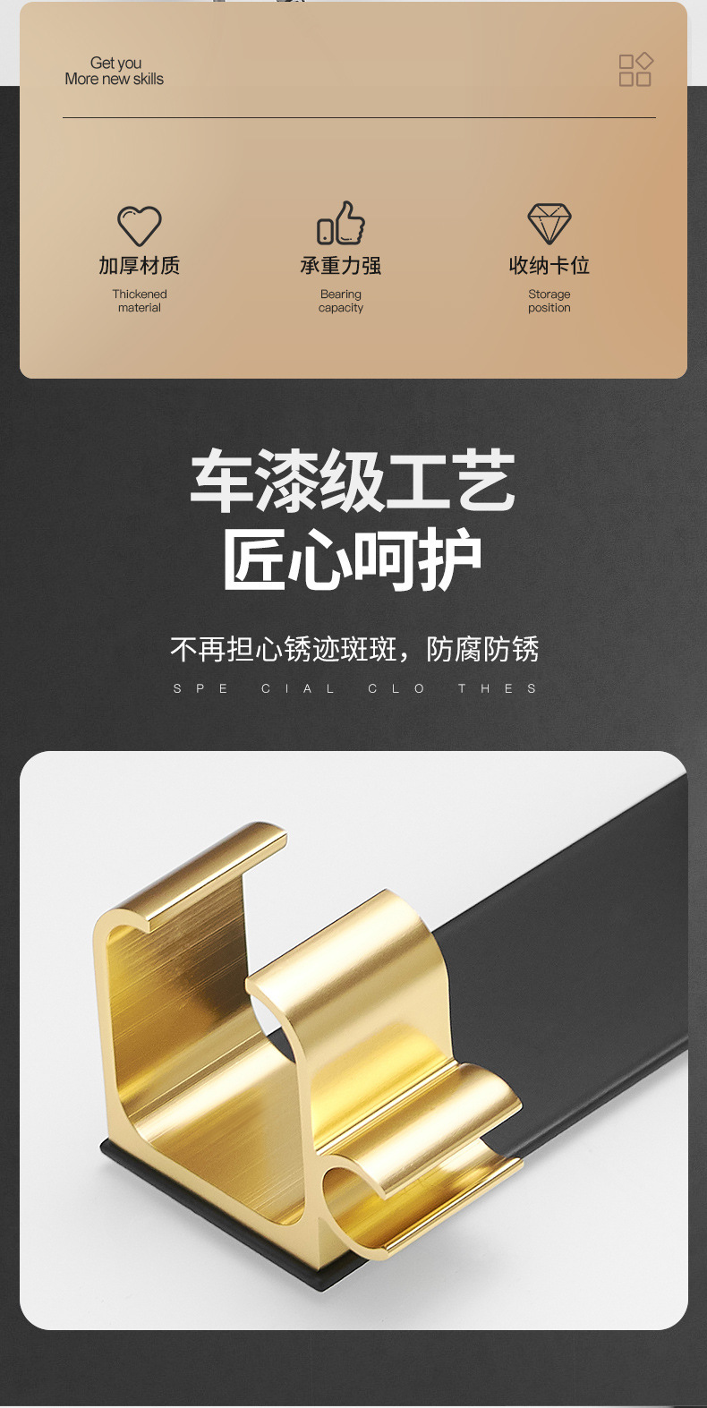 • 공간 알루미늄 B 컬링 아이언 랙-블랙 및 골드 (펀치 프리 설치)